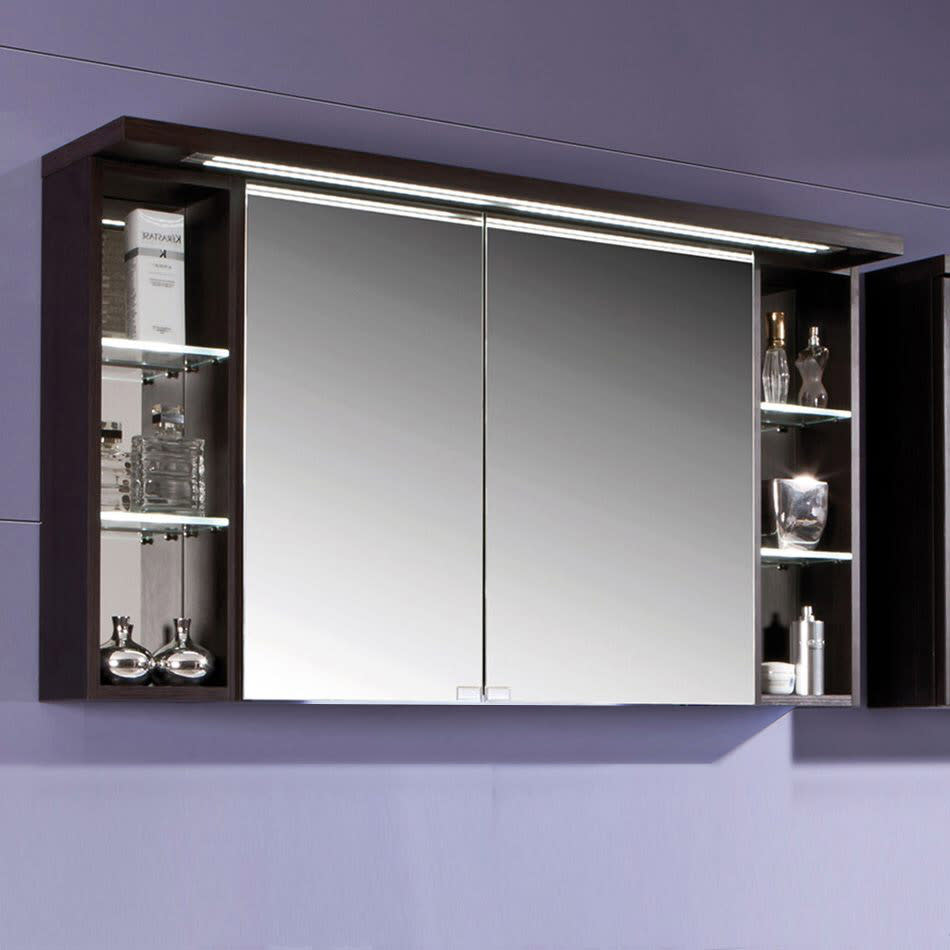 Puris Crescendo Spiegelschrank 120 x 15 x 66,8 cm mit LED Beleuchtung, große Tür rechts