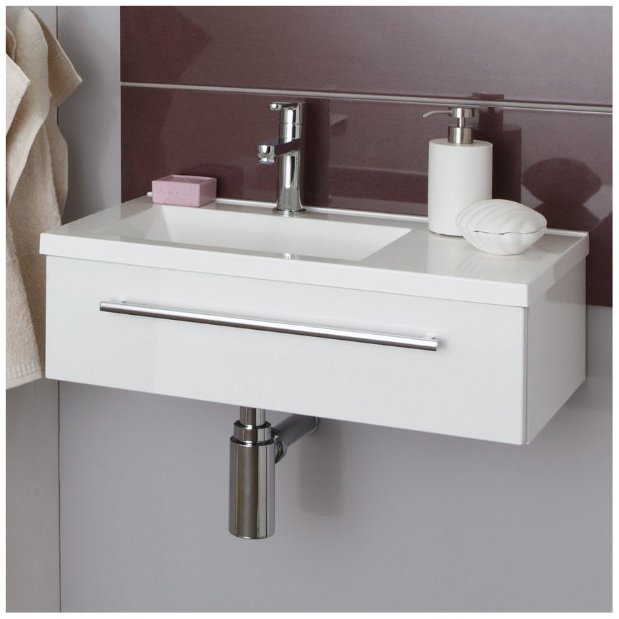 Puris for Guests Möbelkombination mit Mineralguss-Aufsatzwaschtisch 60 cm, Ablage rechts
