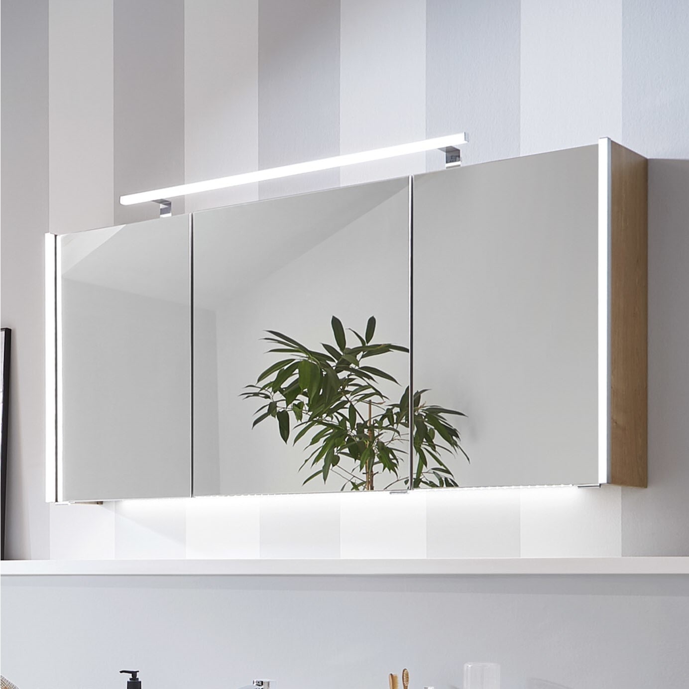 Puris Linea Spiegelschrank 130 cm mit 2 LED-Beleuchtungsprofilen