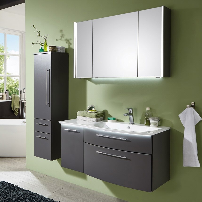 Puris Linea Spiegelschrank 100 cm mit 2 LED-Beleuchtungsprofilen