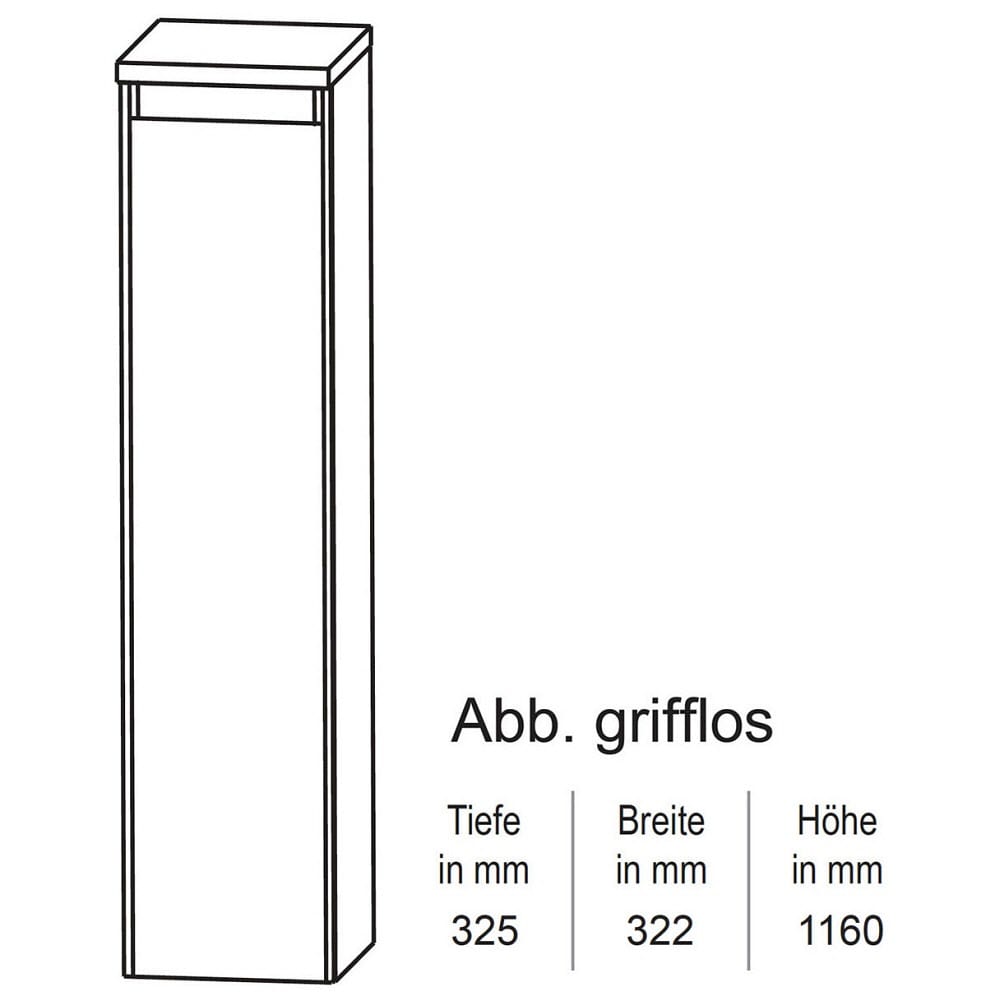 Puris Unique Mittelschrank 32,2 x 116 cm mit 1 Tür grifflos, Anschlag links, Innenschubkasten