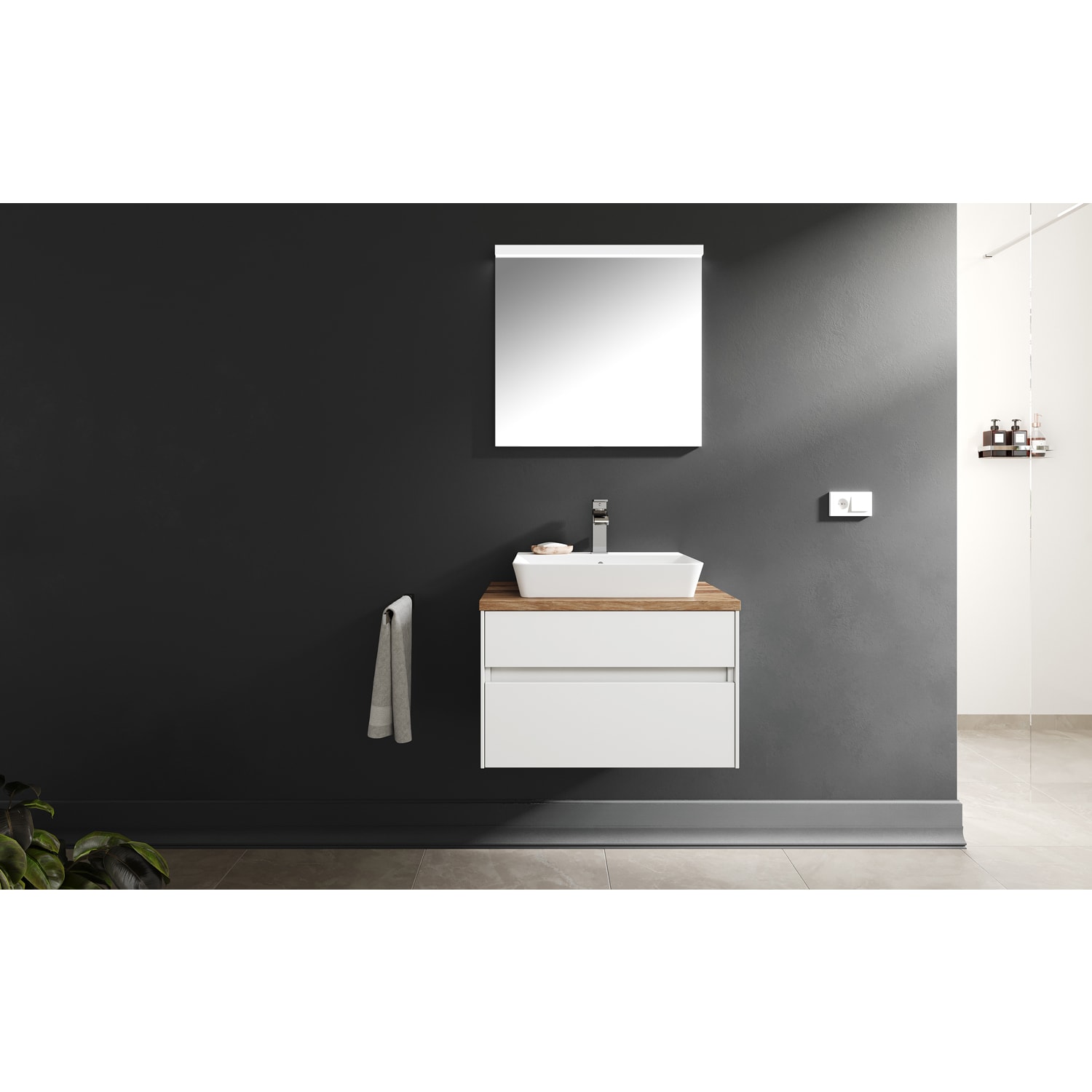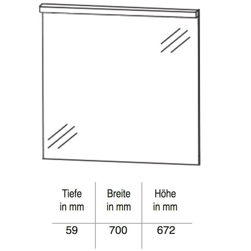 Puris Unique Badspiegel 70 cm mit LED Beleuchtung und Kippschalter für modernes Badezimmerambiente