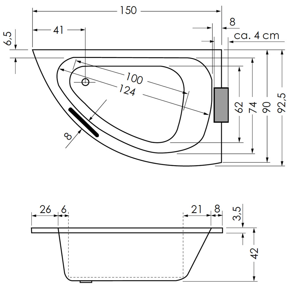 Sanitäracryl, Wasserinhalt ca. 80 l