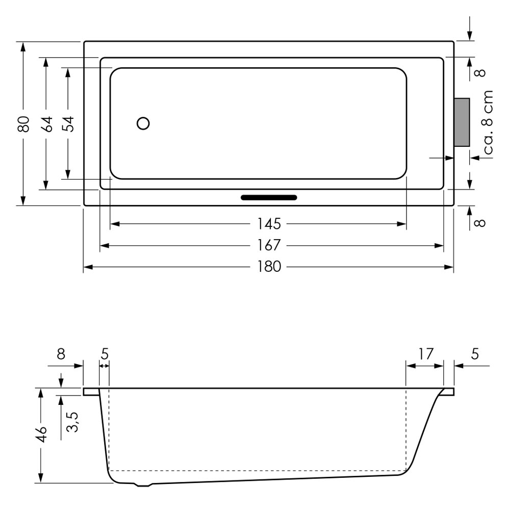 Repabad Genf Mono 180/80 Rechteck Badewanne