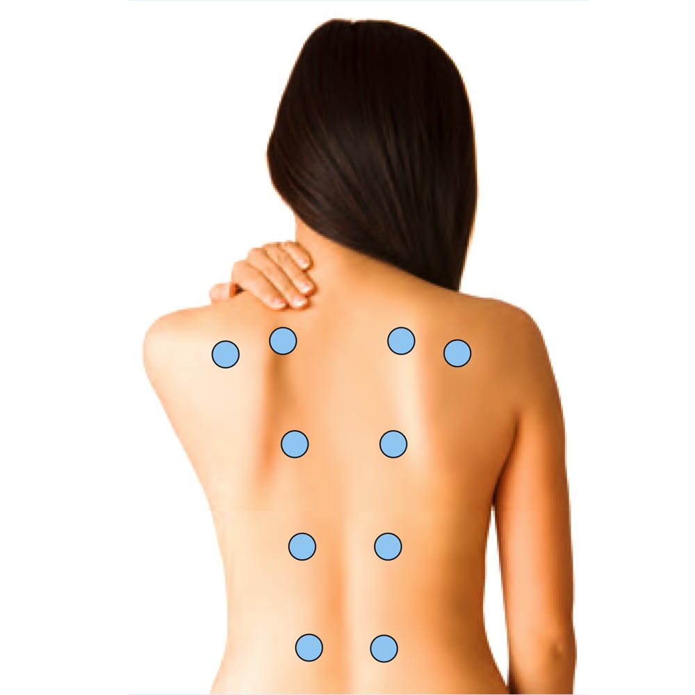 - 10 superflache, ergonomisch angeordnete Düsen mit feinen Auslässen massieren die beanspruchte Muskulatur im Schulter-, Rücken- und Lendenwirbelbereich auf sanfte Art und Weise