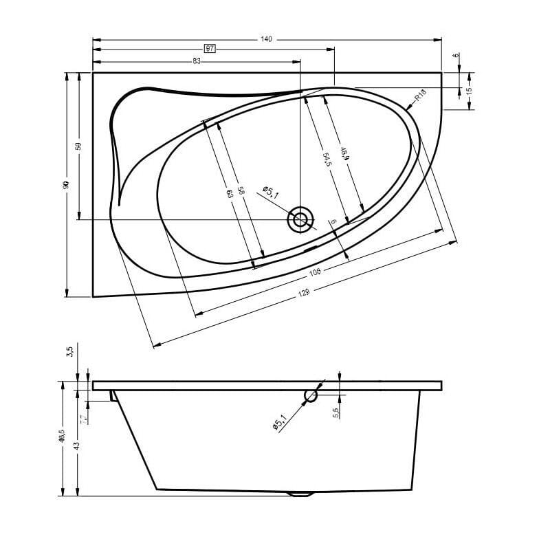 - Acryl-Badewanne Nutzinhalt ca. 120 L inkl. 1 Person