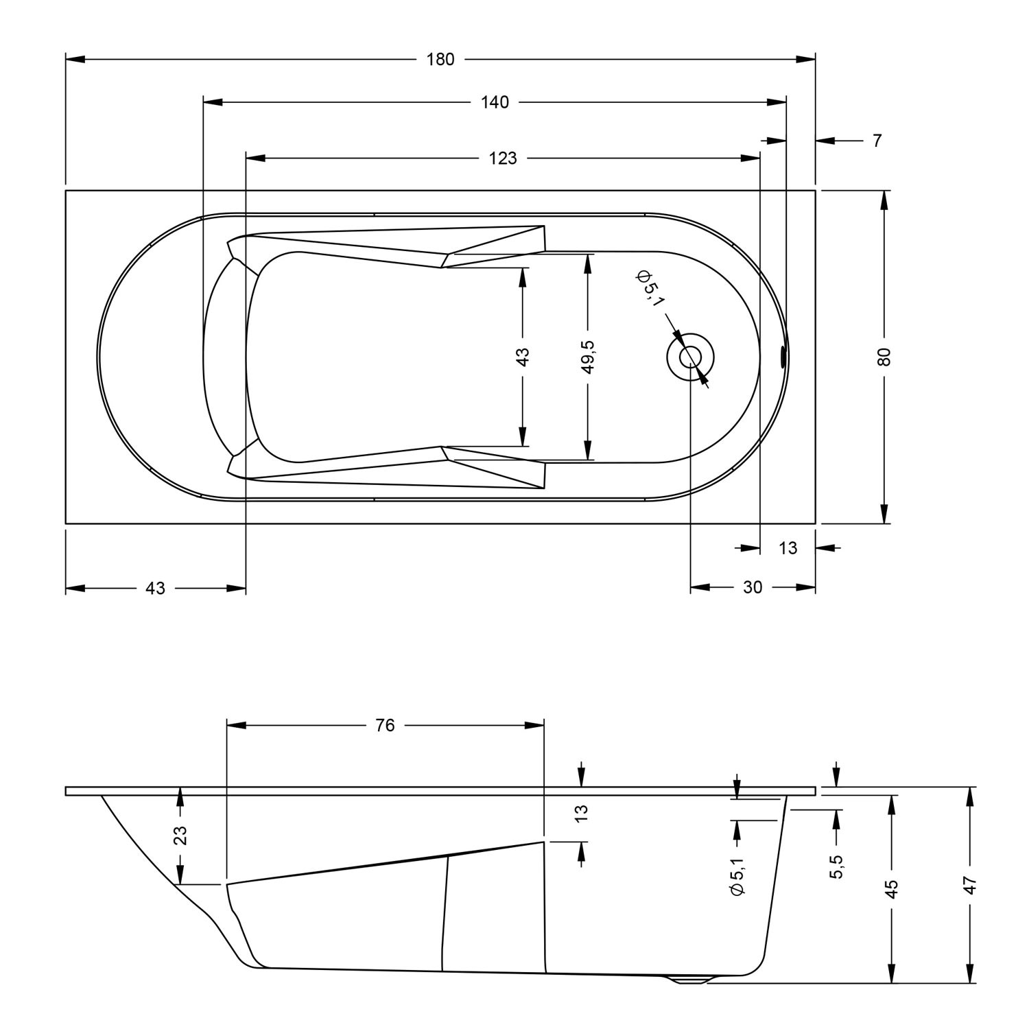 Riho Lazy Rechteck-Badewanne 180 x 80 cm
