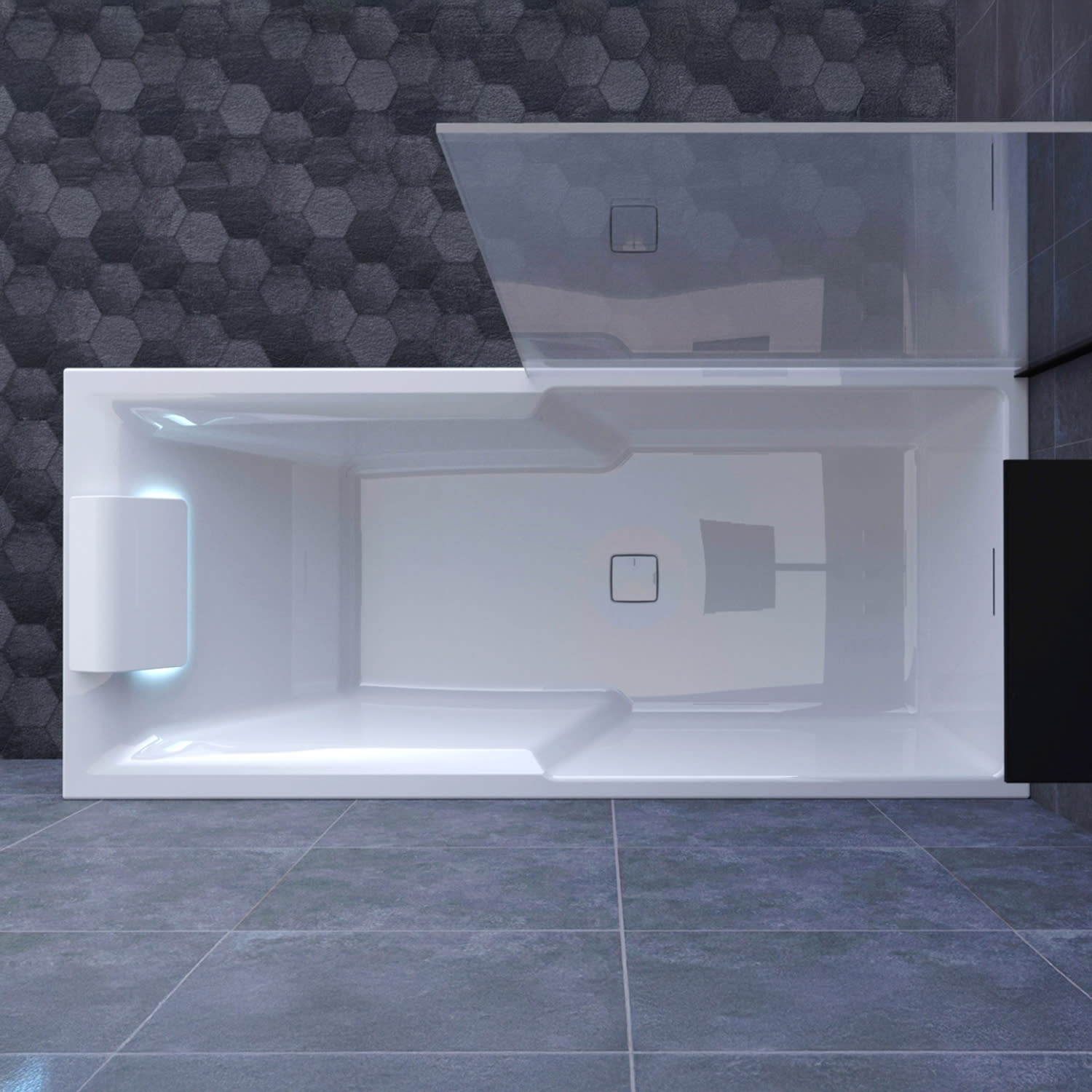 Riho Still Shower Rechteck-Badewanne 180 x 80 cm mit LED-Beleuchtung und Kopfstütze links/rechts