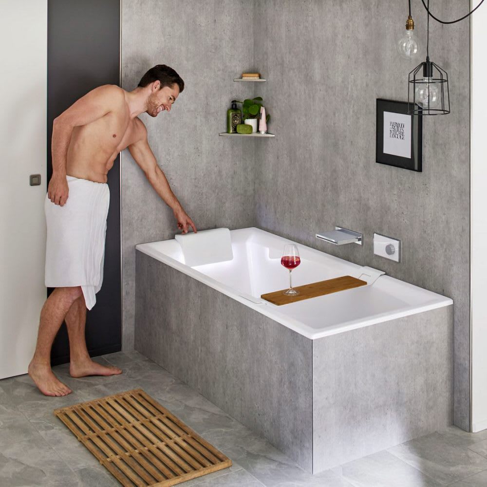 Riho Still Square Rechteck-Badewanne 170 x 75 cm inkl. LED-Beleuchtung und Kopfstütze links
