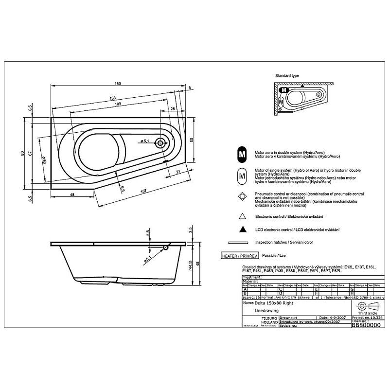 Riho Delta Raumspar-Badewanne 150 x 80 cm, rechts