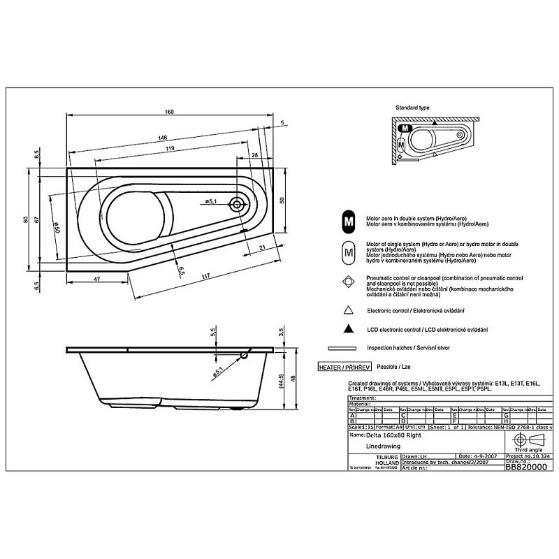 Riho Delta Raumspar-Badewanne 160 x 80 cm, rechts