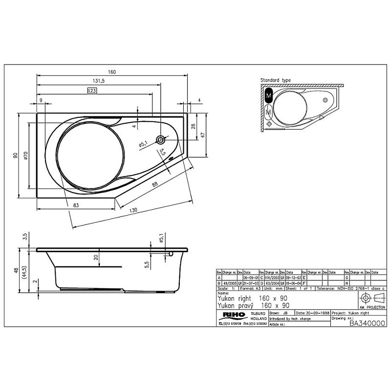 Riho Yukon Badewanne 160 x 90 cm rechts