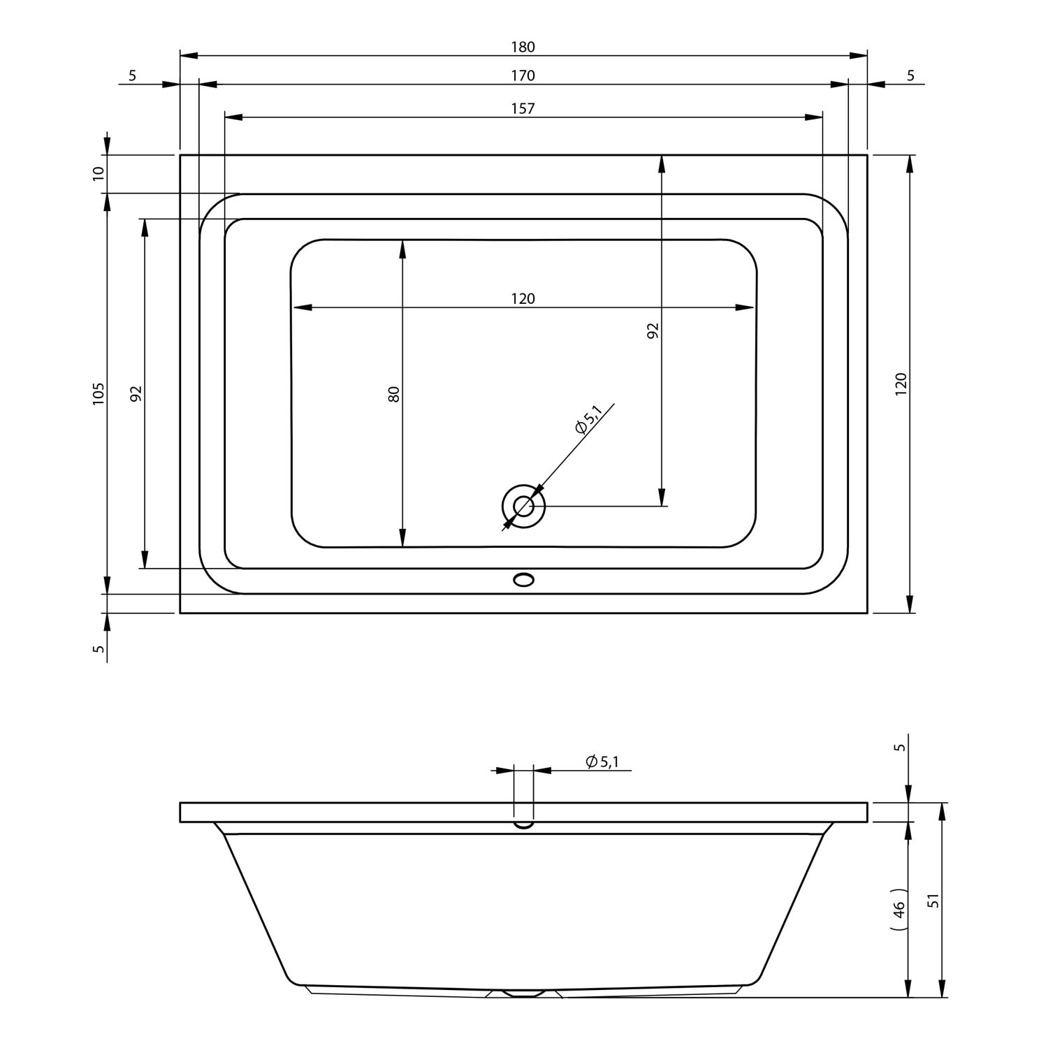 L: 180 B: 120 H: 51 cm