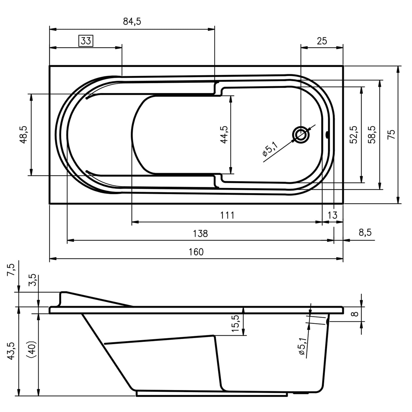 - Acryl-Badewanne Nutzinhalt ca. 140 Liter (inkl. 1 Person)