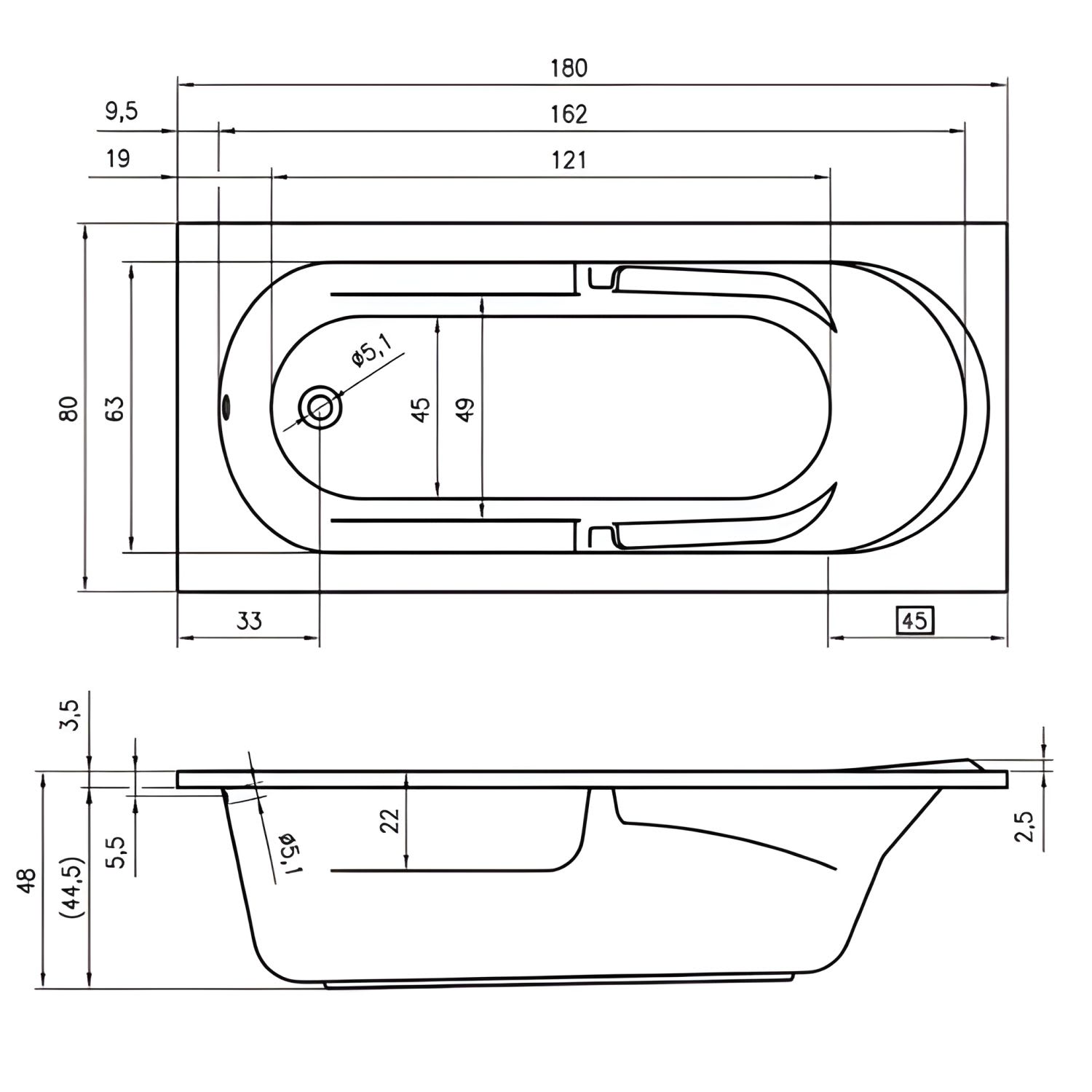 - Acryl-Badewanne Nutzinhalt ca. 145 Liter (inkl. 1 Person)