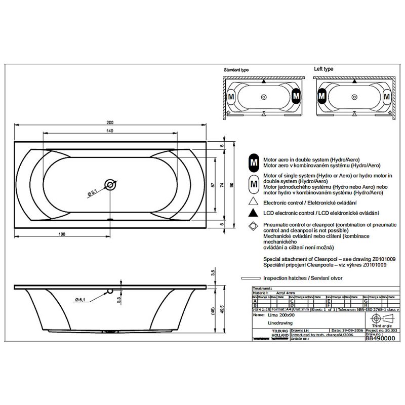Riho Lima Rechteck-Badewanne 200 x 90 cm