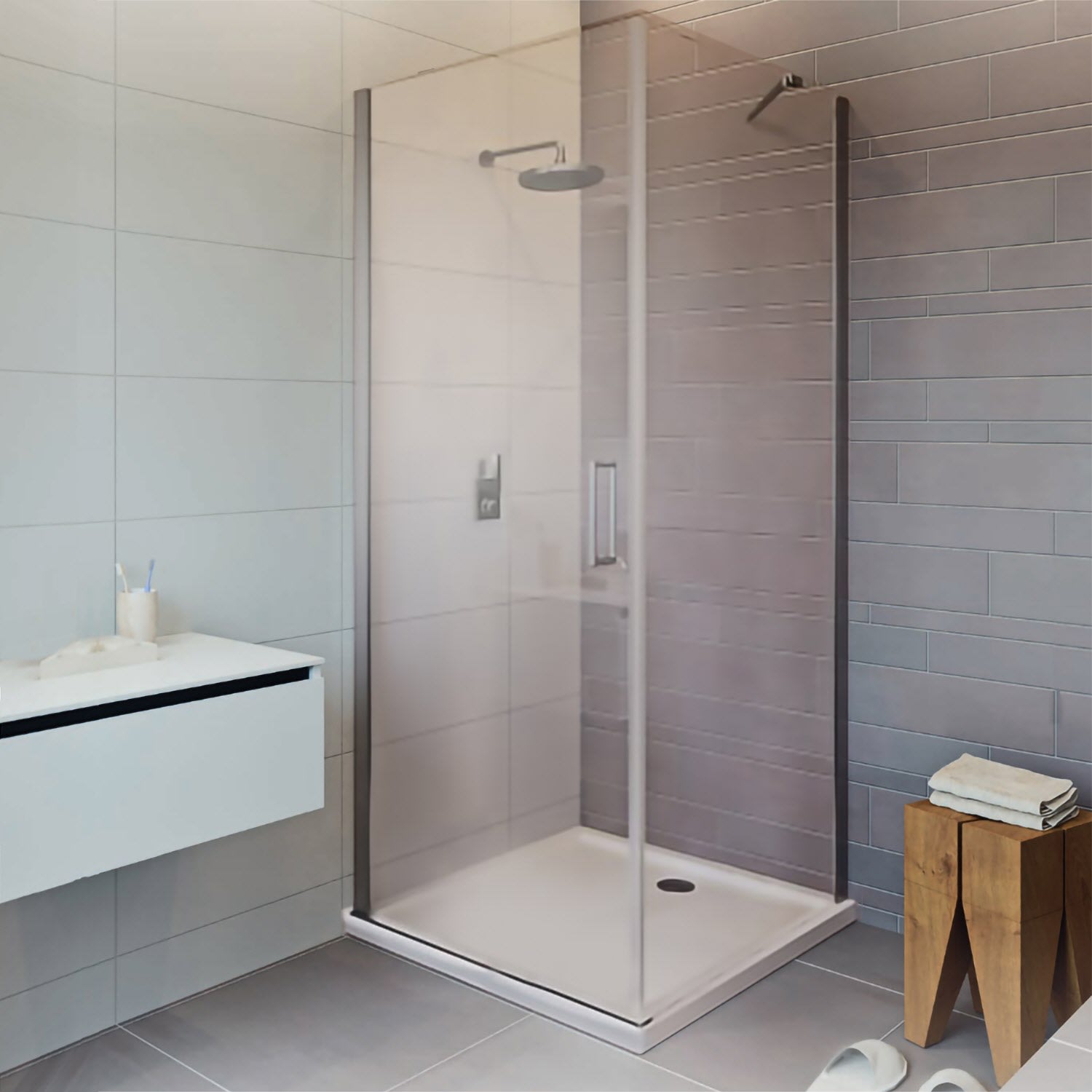 - Duschtür mit 90° abgewinkelter Seitenwand