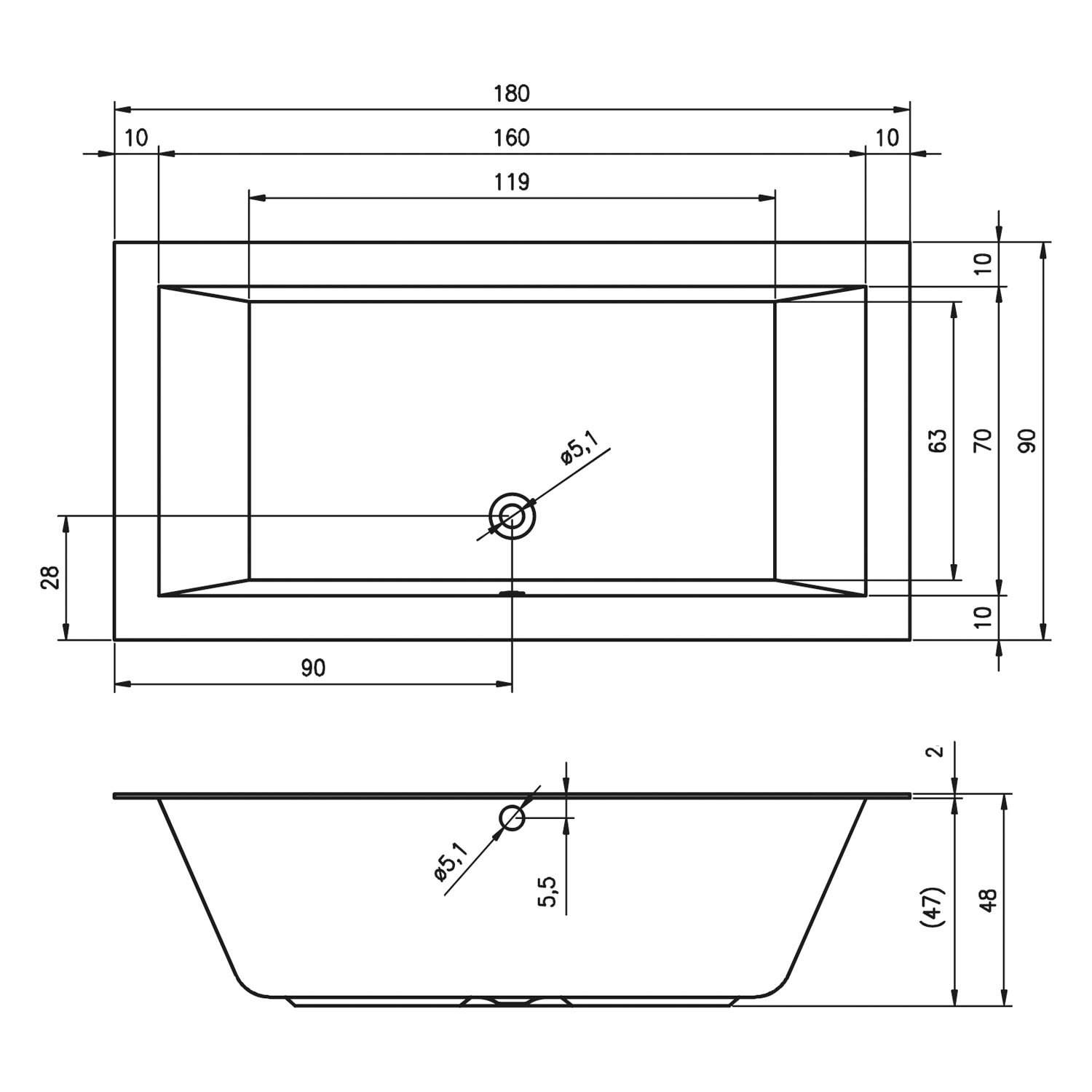 - Rechteck-Badewanne 180 x 90 cm mit Whirlpoolsystem