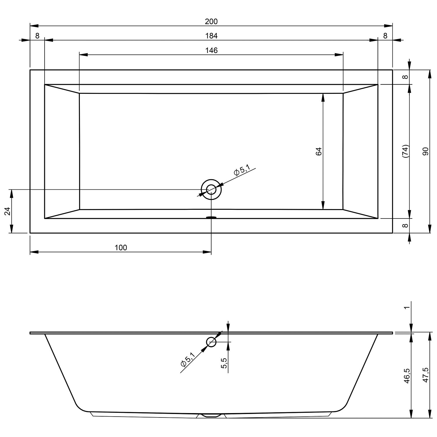 - Rechteck-Badewanne 200 x 90 cm mit Whirlpoolsystem