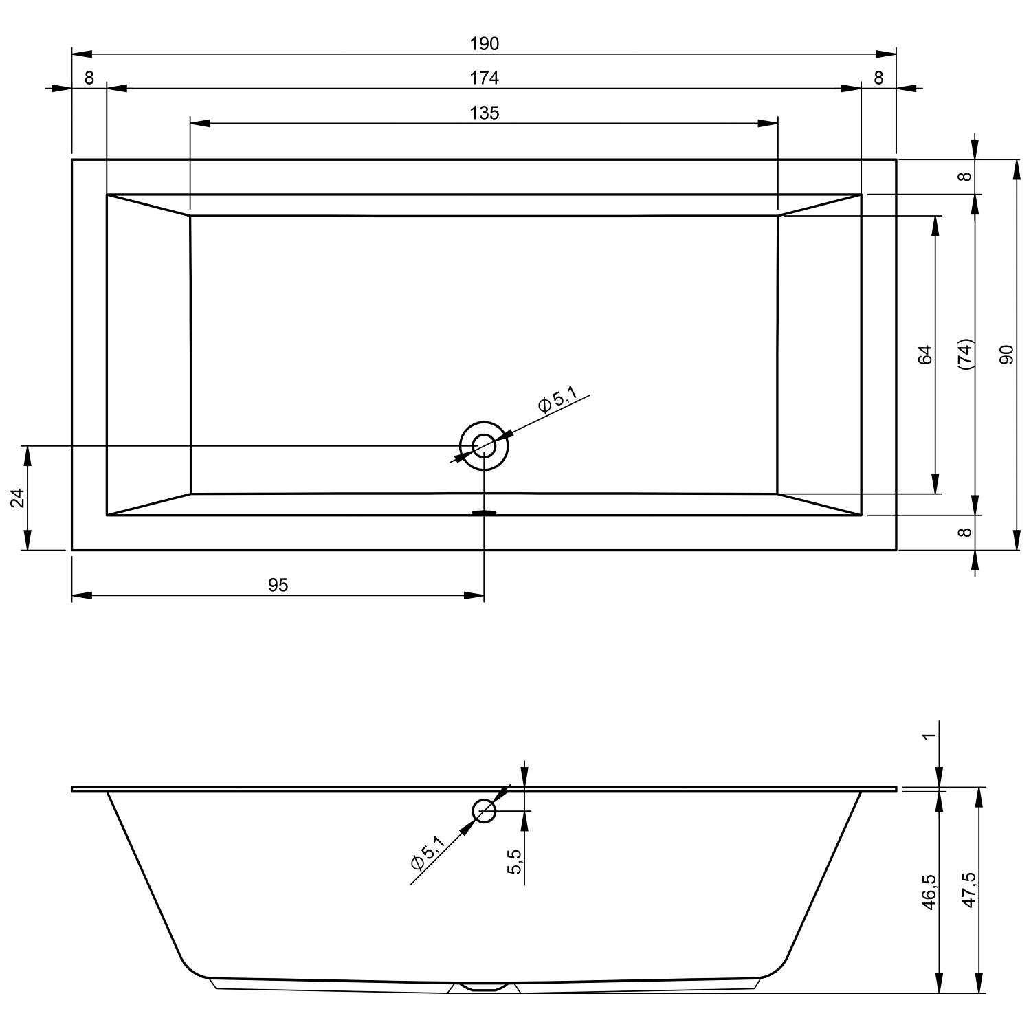- Rechteck-Badewanne 190 x 90 cm mit Whirlpoolsystem