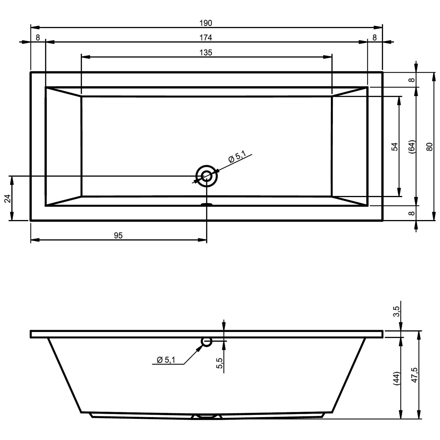- Rechteck-Badewanne 190 x 80 cm mit Whirlpoolsystem