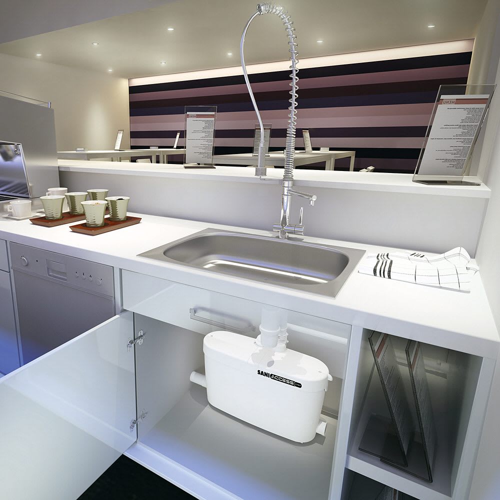 - Die Saniaccess 4 ist speziell für die Entsorgung fäkalienfreier Abwässer, kalt- oder heiß aus dem Haushalt z.B. für Abwässer von Wasch-/ Spülmaschine, Waschtisch, Dusche, Spüle, Kondensaterzeuger.