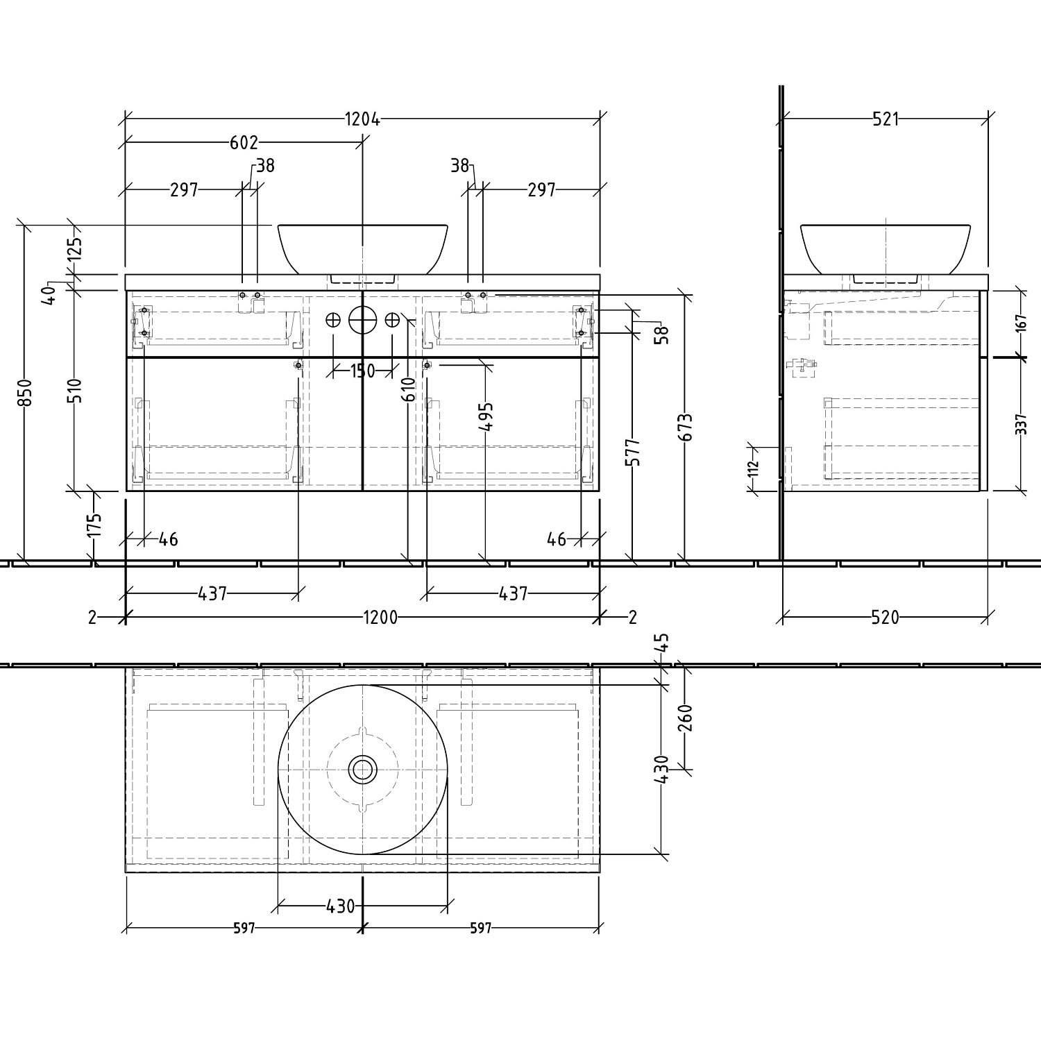 Sanipa 2morrow WT-Unterbau mit Konsole 120,4 cm für Keramik-WT Artis