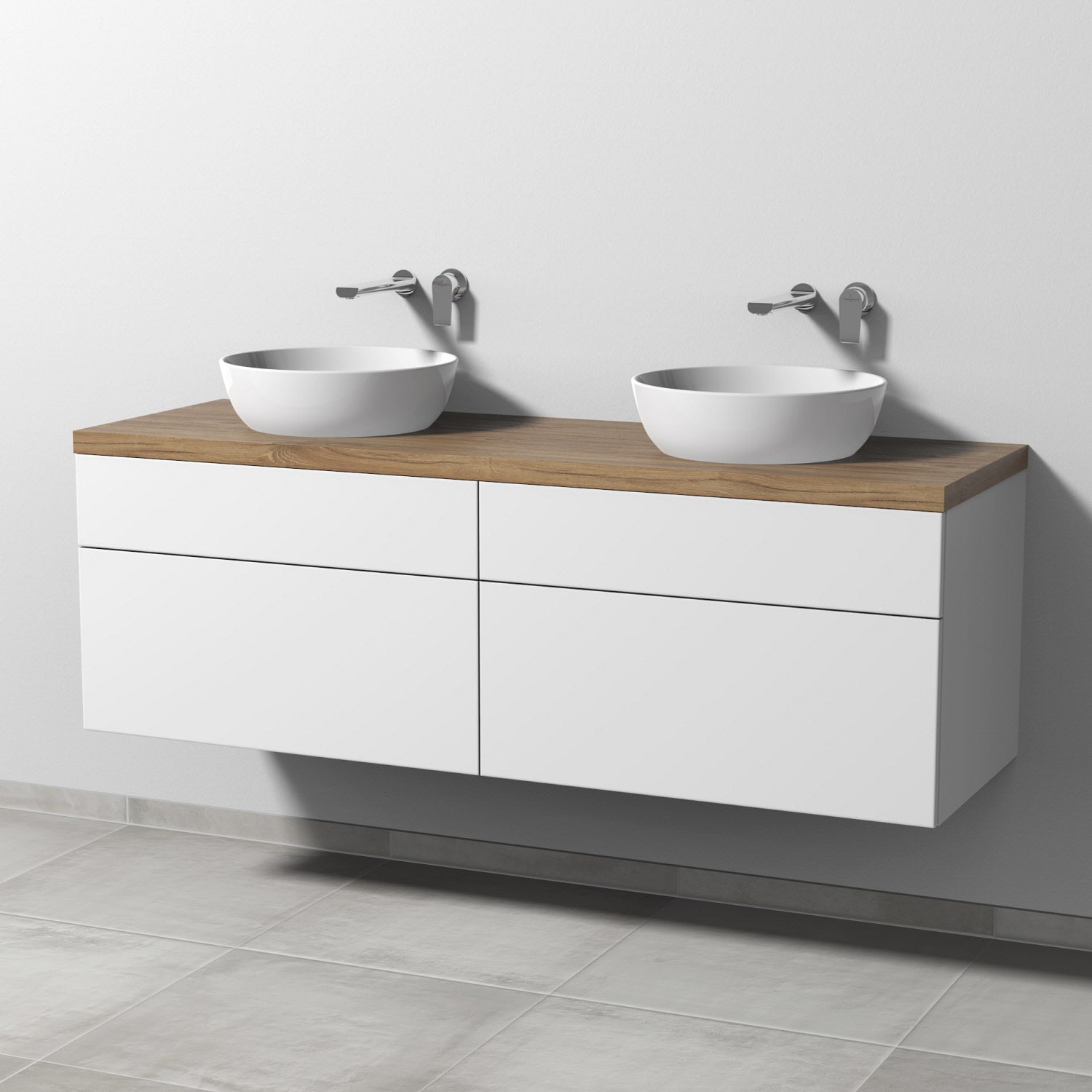 Kronenbach Cube Waschtischkonsole 161 cm für 2 Waschtische mit 2 Auszügen und TIP-ON