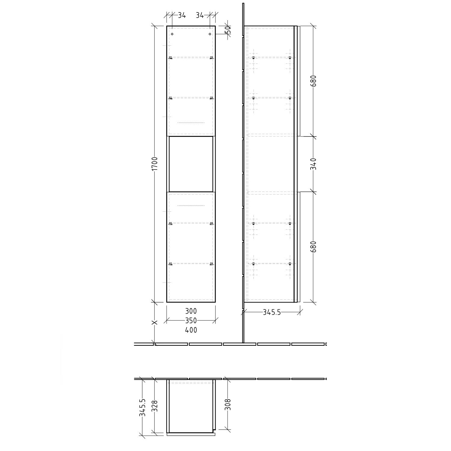 - Schrankaufhänger sind von außen befestigt (innen nicht sichtbar)