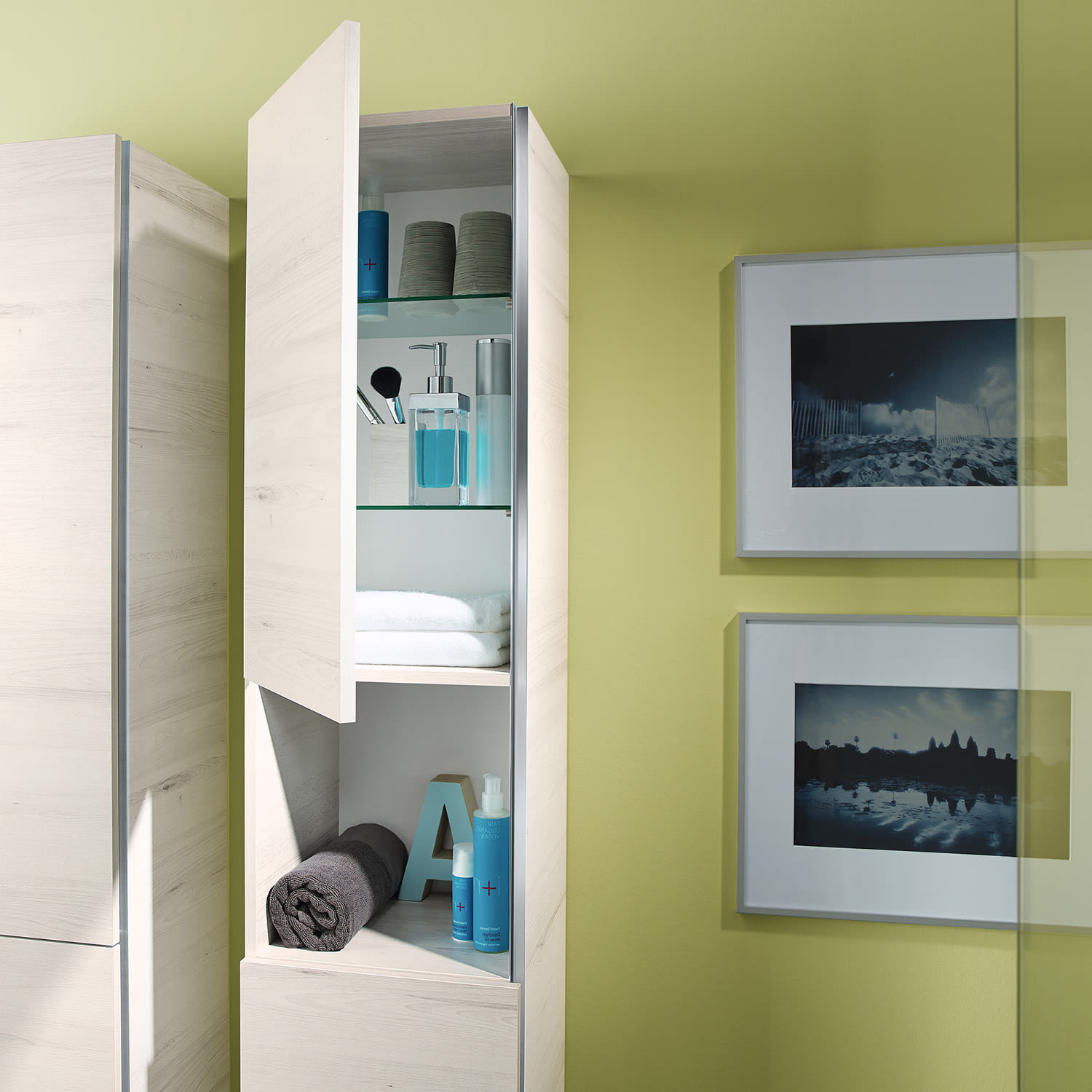 Sanipa 3way Hochschrank 35 cm, 1 offenes Fach, 2 Türen mit Türanschlag links