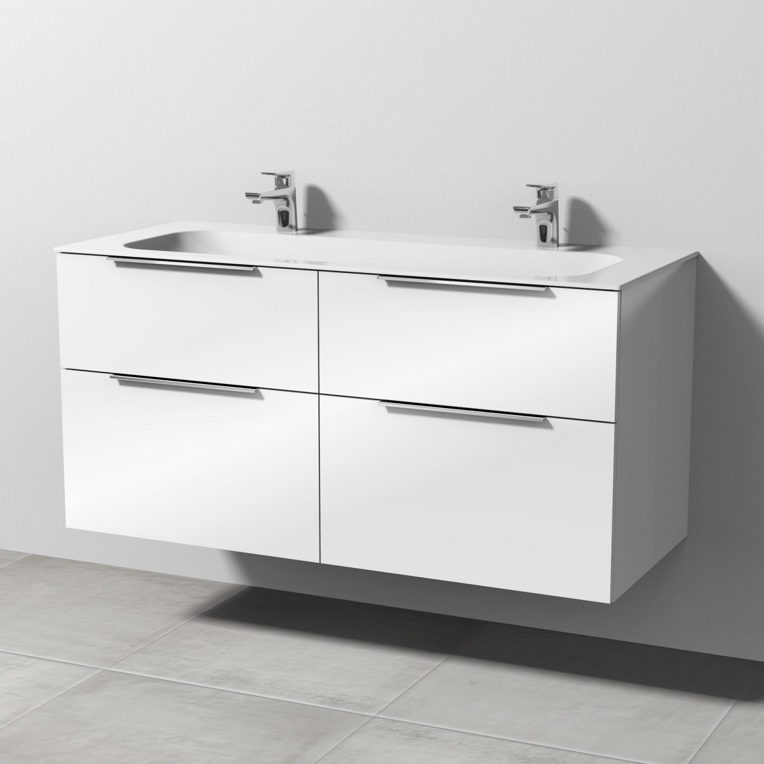 Sanipa 3way Unterschrank 120 cm, 4 Auszüge, Aufsatz-Griffe mit Villeroy & Boch Finion Doppelwaschtisch