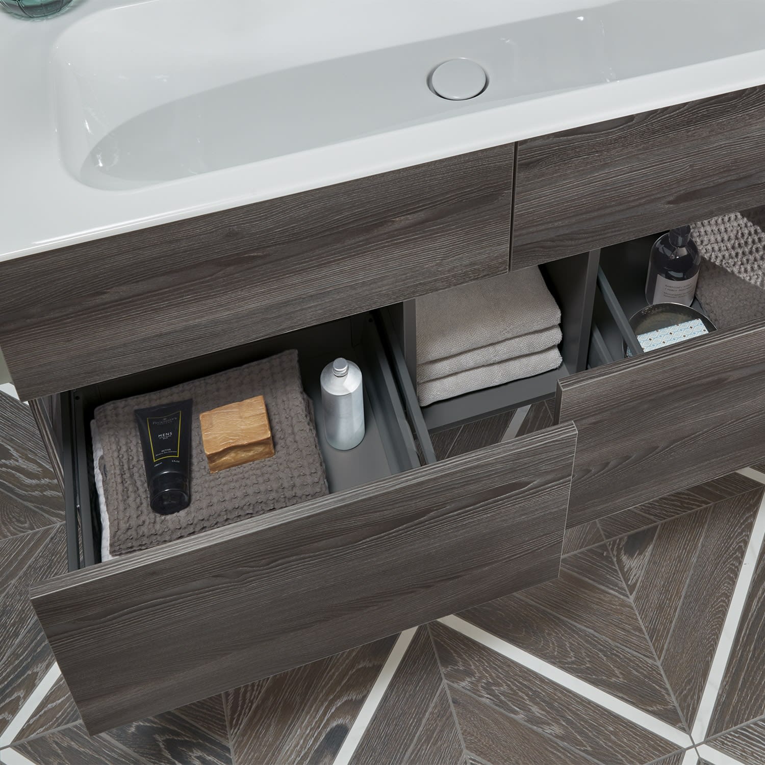 4 Auszüge, mit Aufsatz-Griff, Doppelwaschtisch