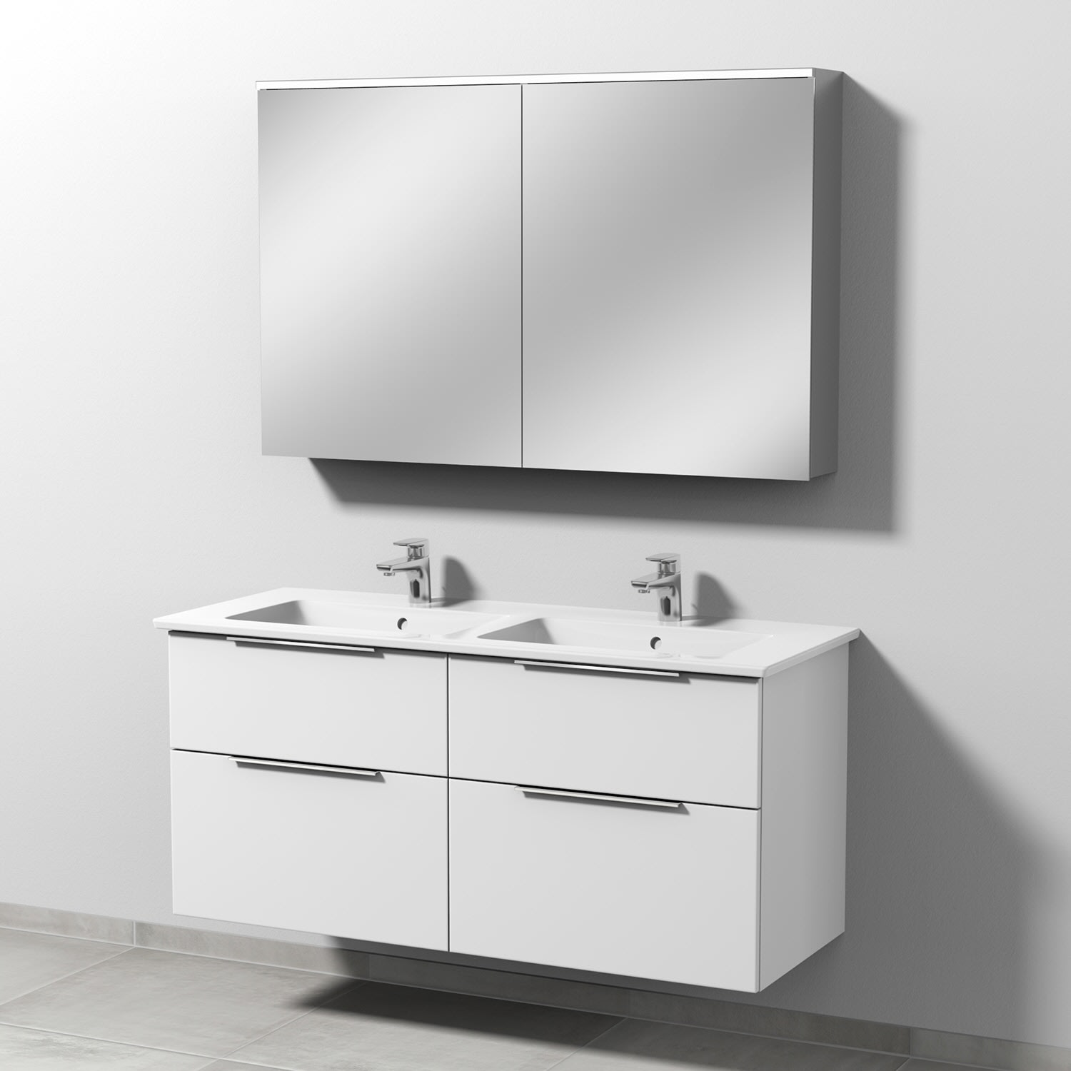 4 Auszüge mit Aufsatz-Griff, Doppelwaschtisch