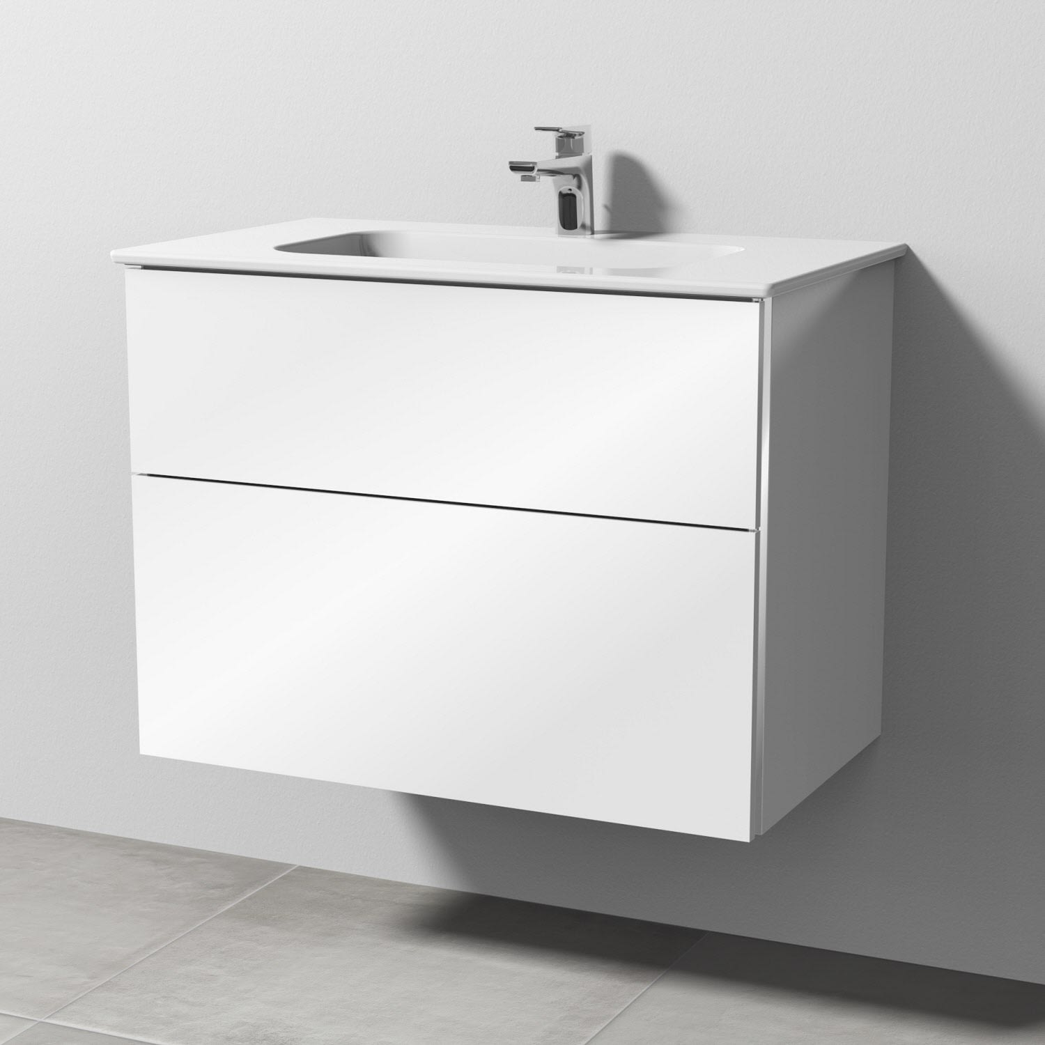 Sanipa 3way Kombination mit Keramikwaschtisch Design 80 cm, 2 Auszüge mit Griff-Leiste