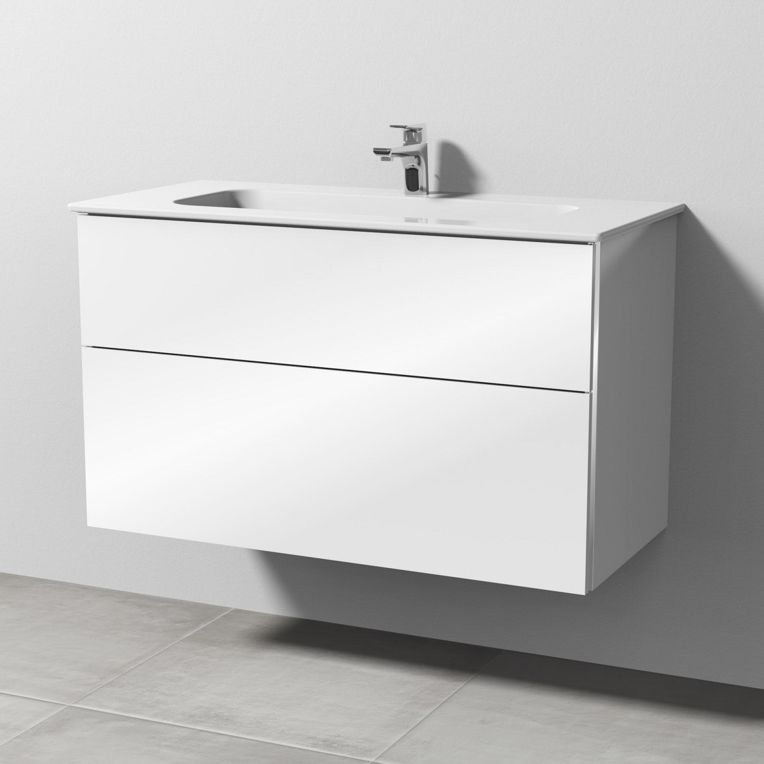 Sanipa 3way Kombination mit Keramikwaschtisch Design 100 cm, 2 Auszüge mit Griff-Leiste