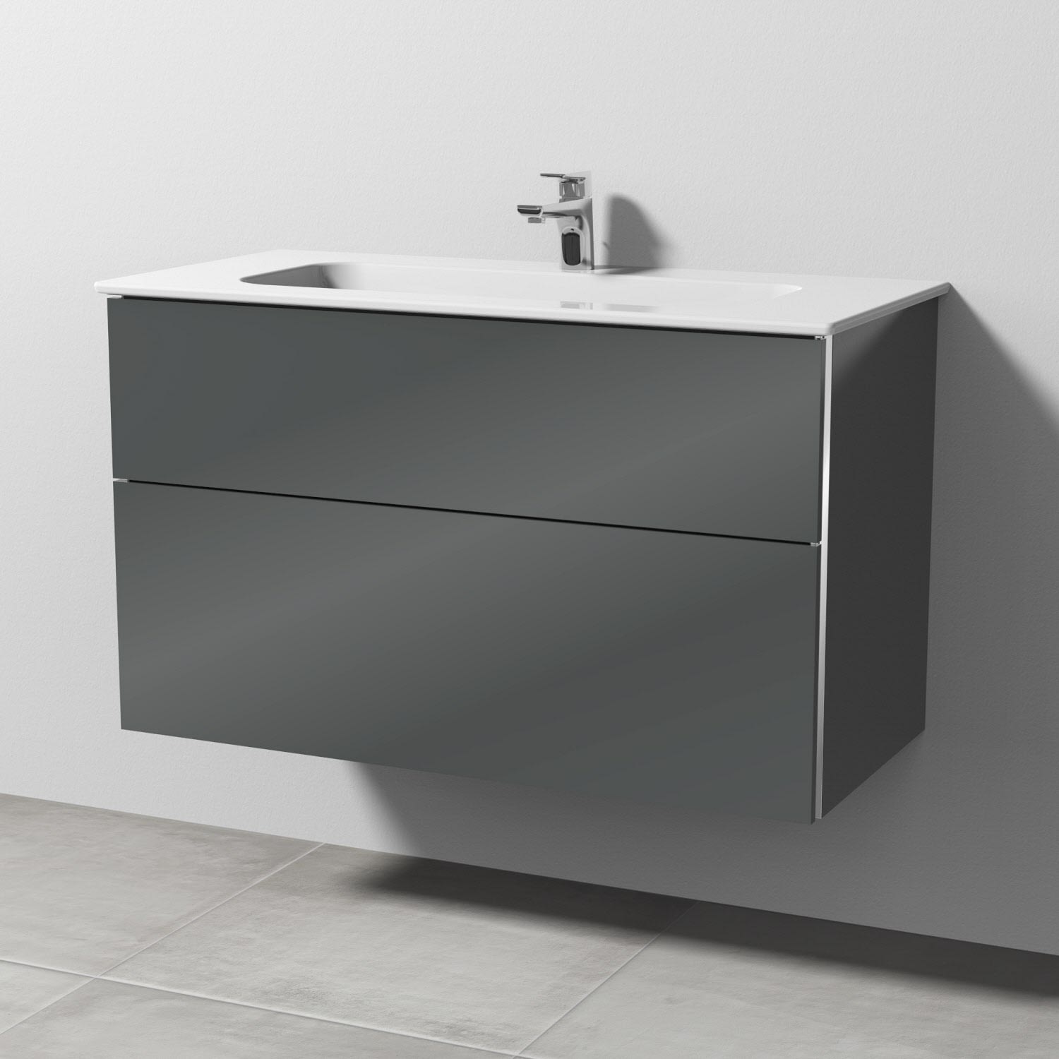 Sanipa 3way Kombination mit Keramikwaschtisch Design 100 cm, 2 Auszüge mit Griff-Leiste