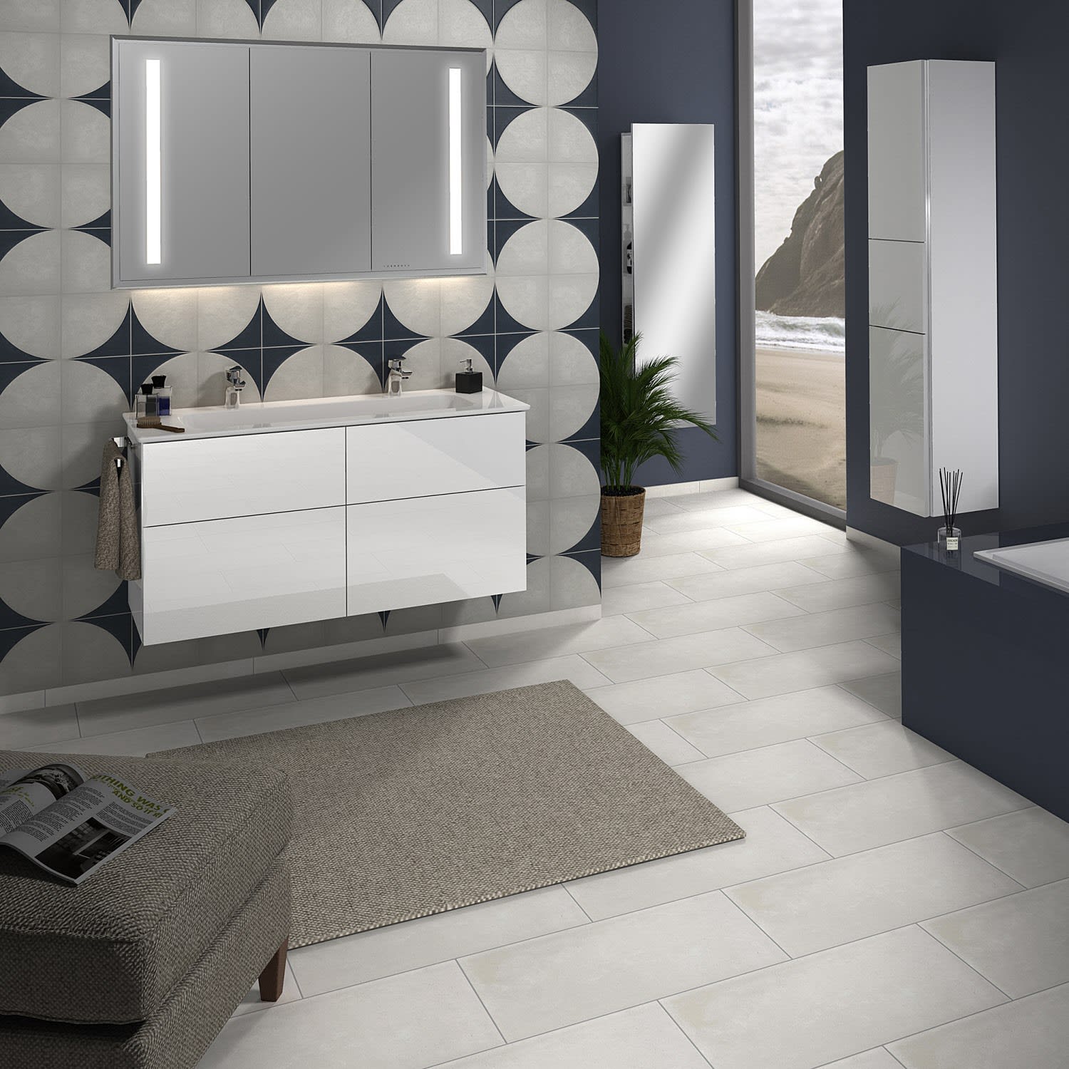 Sanipa 3way Kombination mit Keramik-Doppelwaschtisch Design 120 cm, 4 Auszüge mit Griff-Leiste