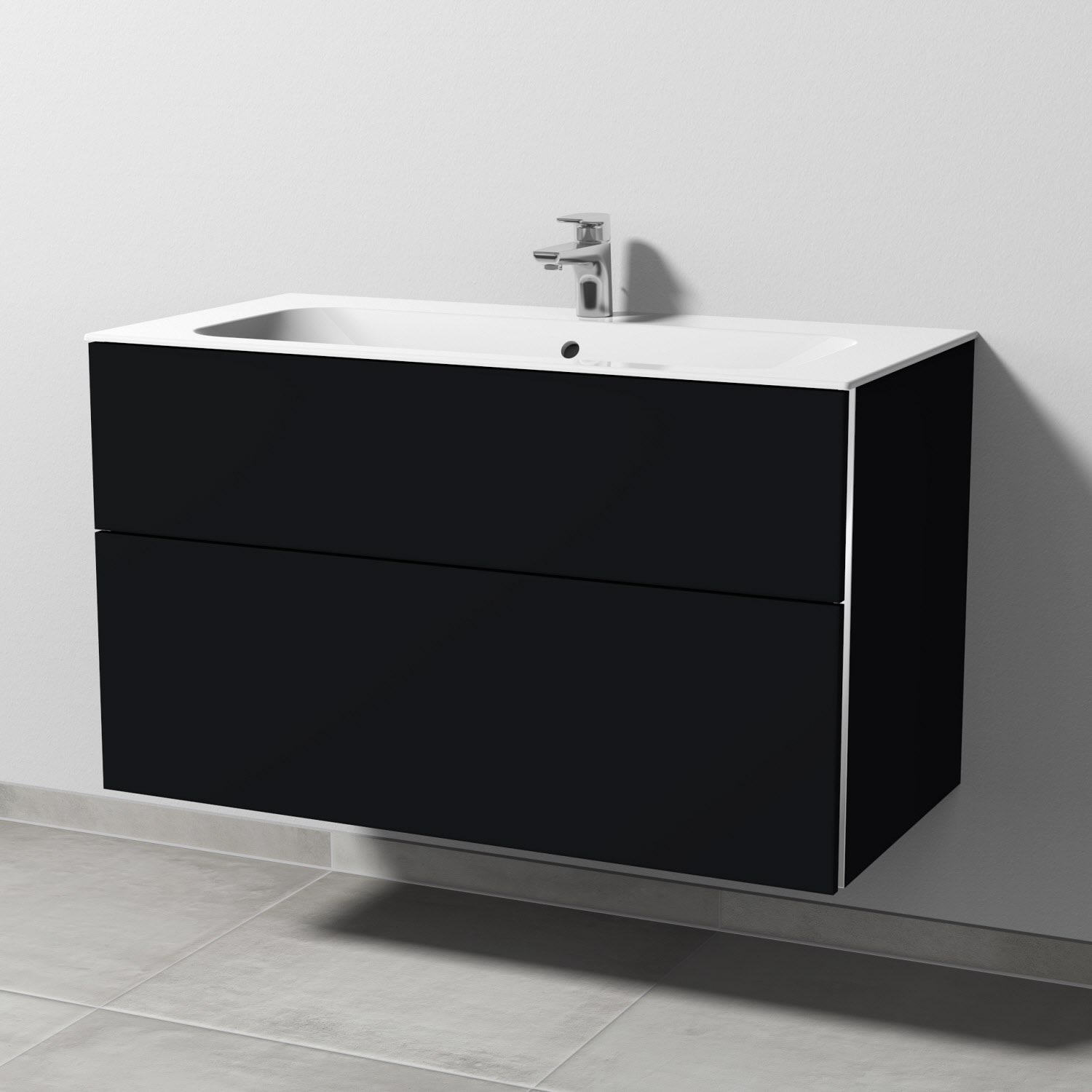Sanipa 3way Unterschrank 100 cm, 2 Auszüge, Griff-Leisten mit Villeroy & Boch Finion Waschtisch