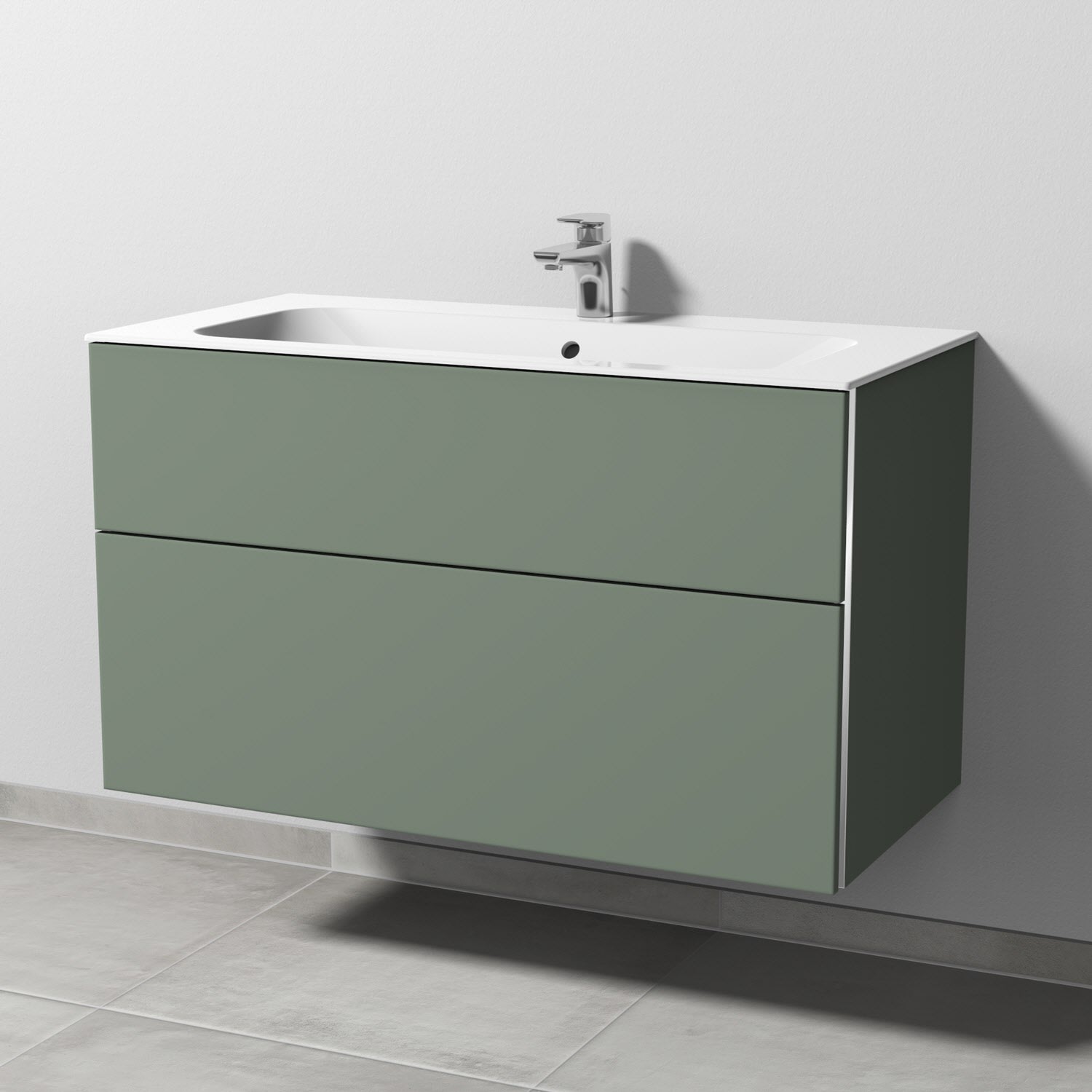 Sanipa 3way Unterschrank 100 cm, 2 Auszüge, Griff-Leisten mit Villeroy & Boch Finion Waschtisch