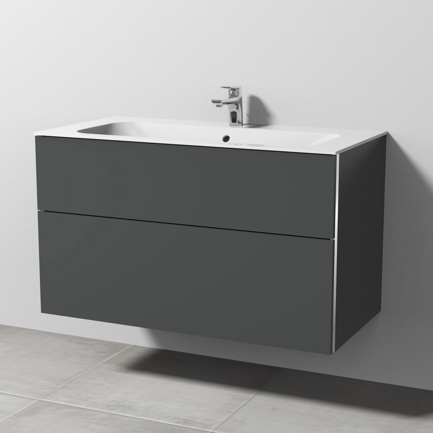 Sanipa 3way Unterschrank 100 cm, 2 Auszüge, Griff-Leisten mit Villeroy & Boch Finion Waschtisch