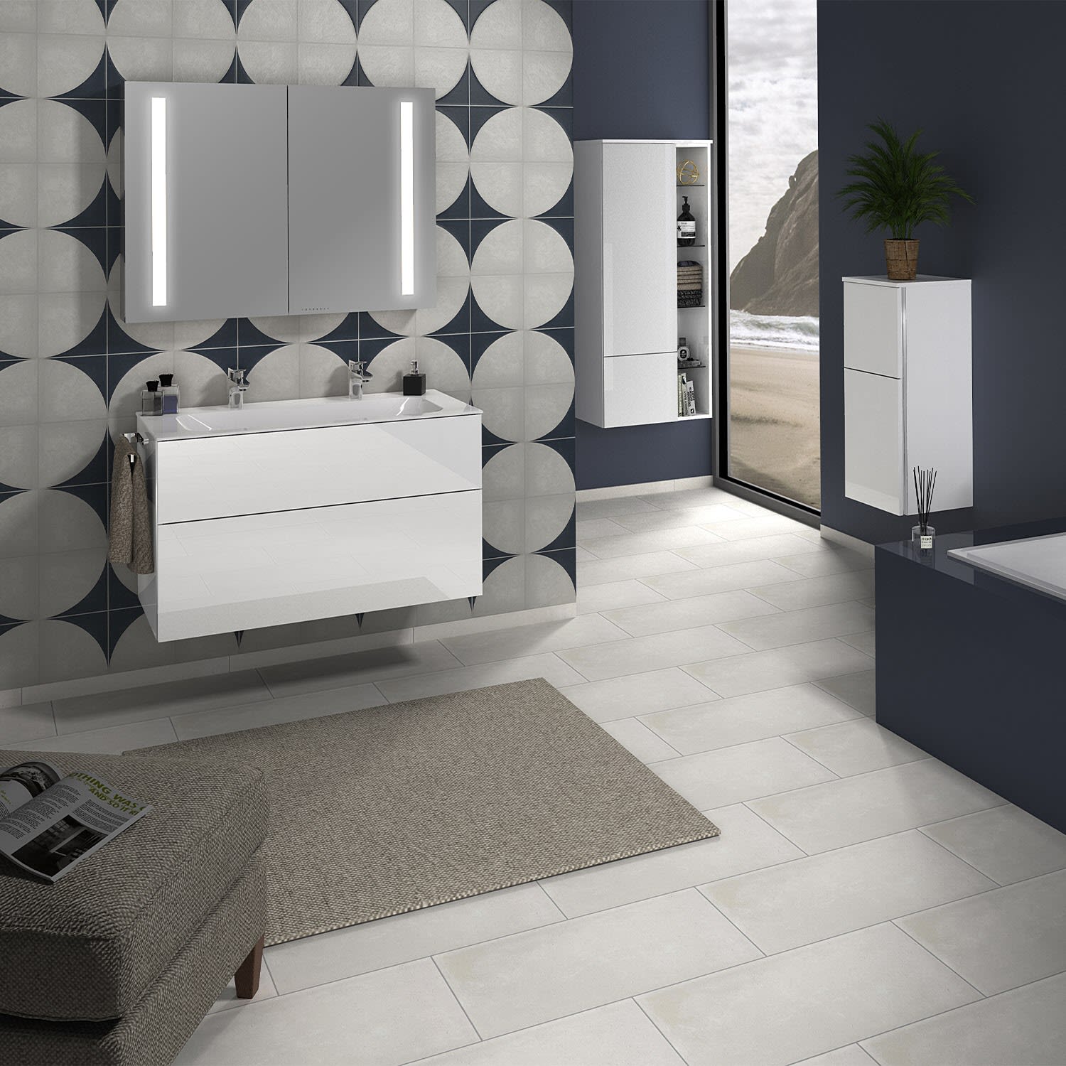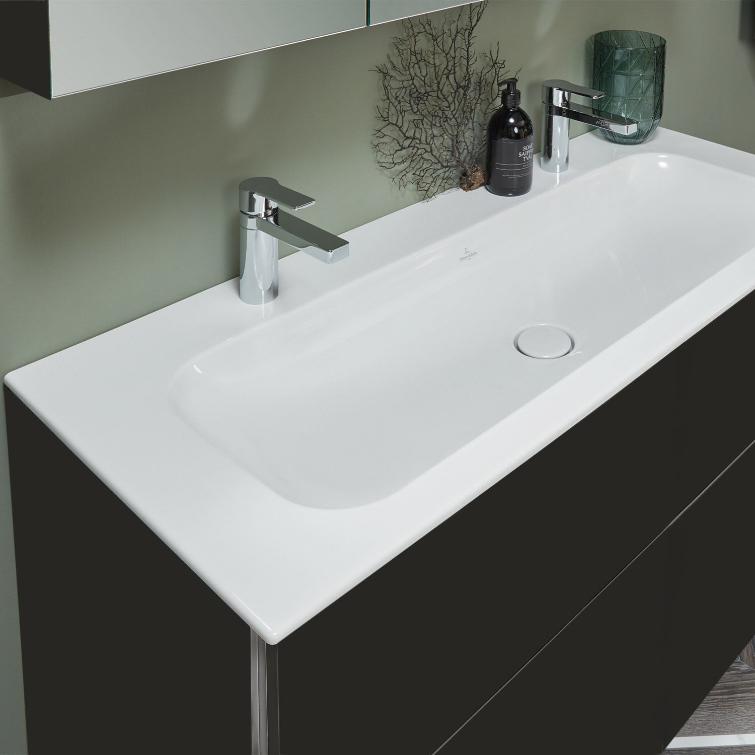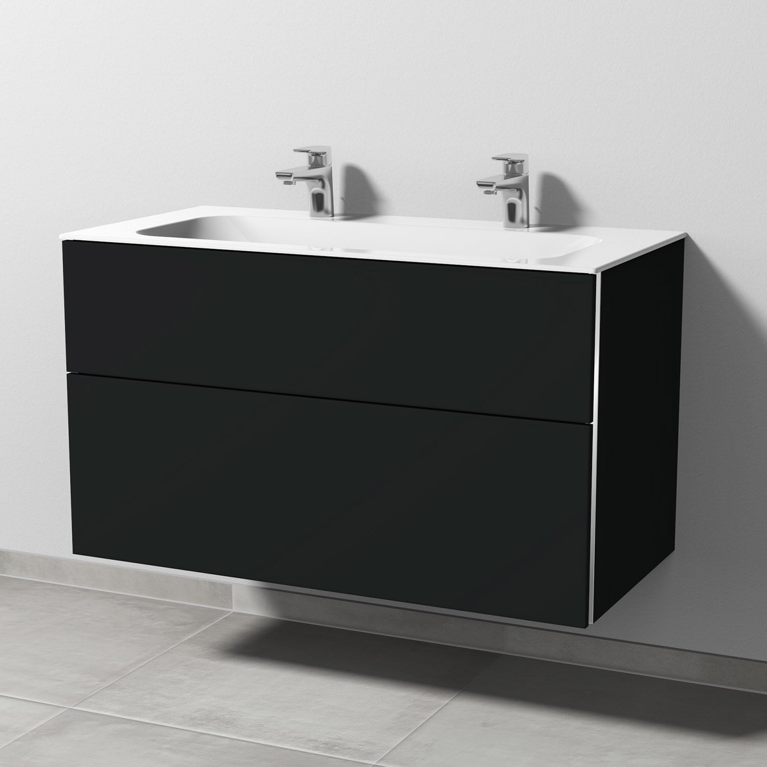 Sanipa 3way Unterschrank 100 cm, 2 Auszüge, Griff-Leisten mit Villeroy & Boch Finion Doppelwaschtisch