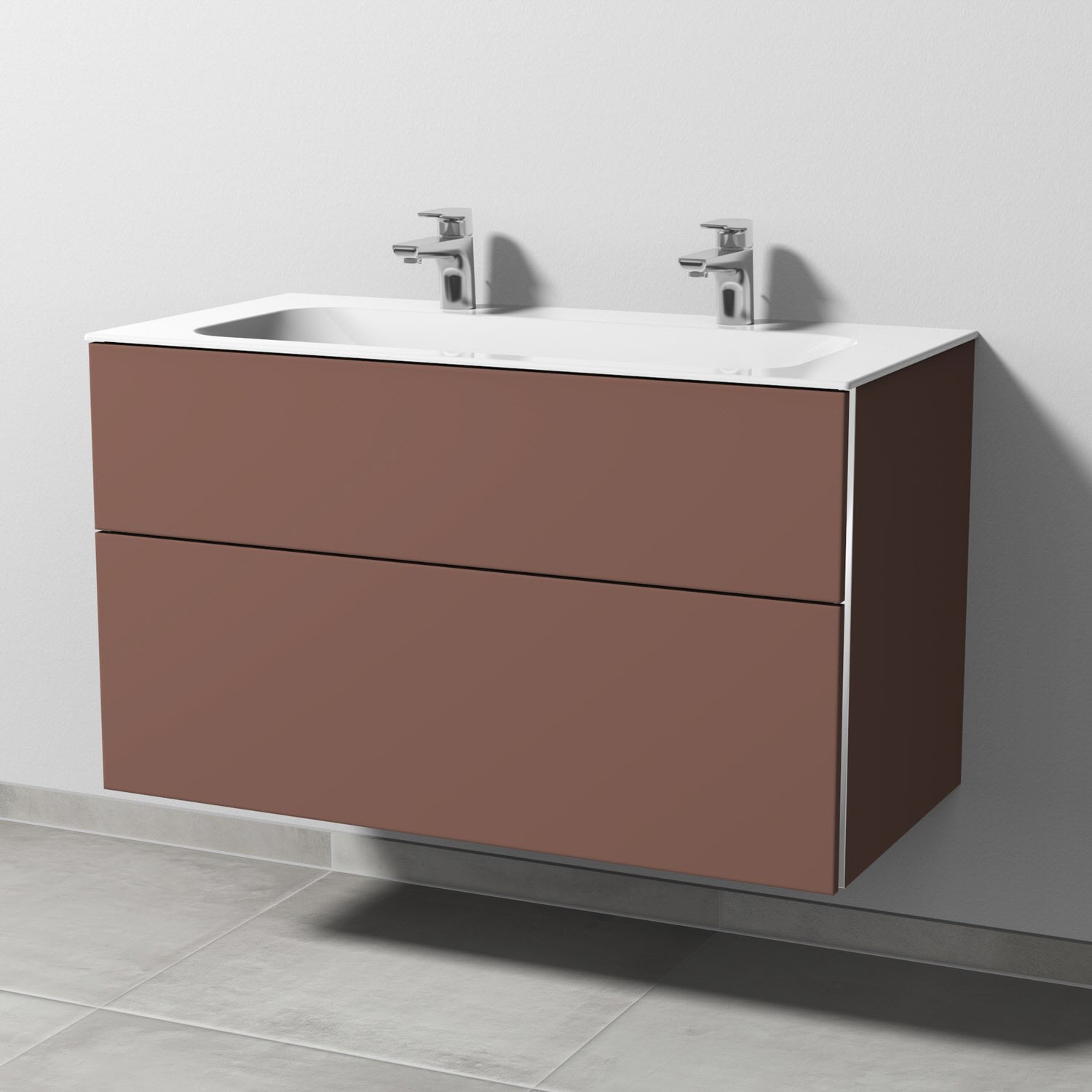 Sanipa 3way Unterschrank 100 cm, 2 Auszüge, Griff-Leisten mit Villeroy & Boch Finion Doppelwaschtisch