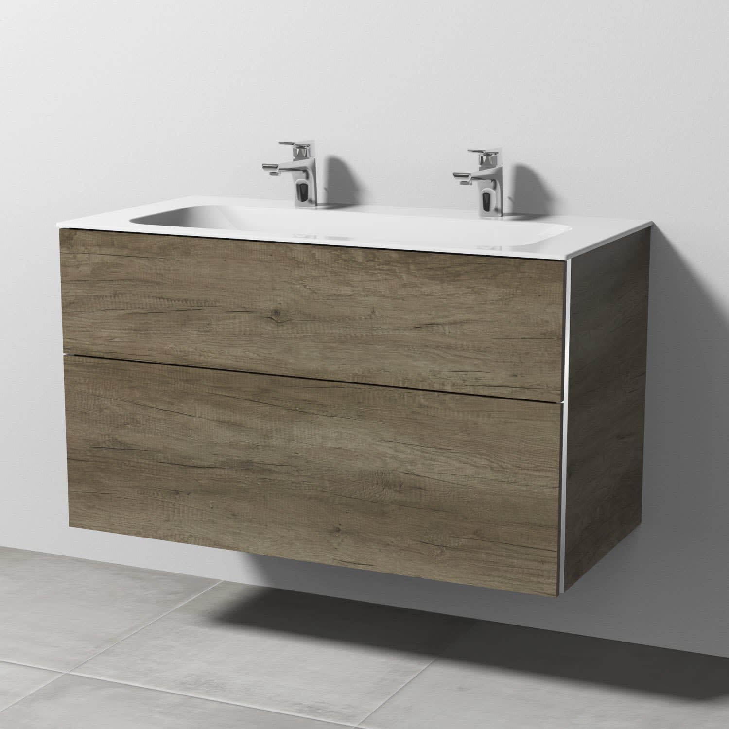 Sanipa 3way Unterschrank 100 cm, 2 Auszüge, Griff-Leisten mit Villeroy & Boch Finion Doppelwaschtisch