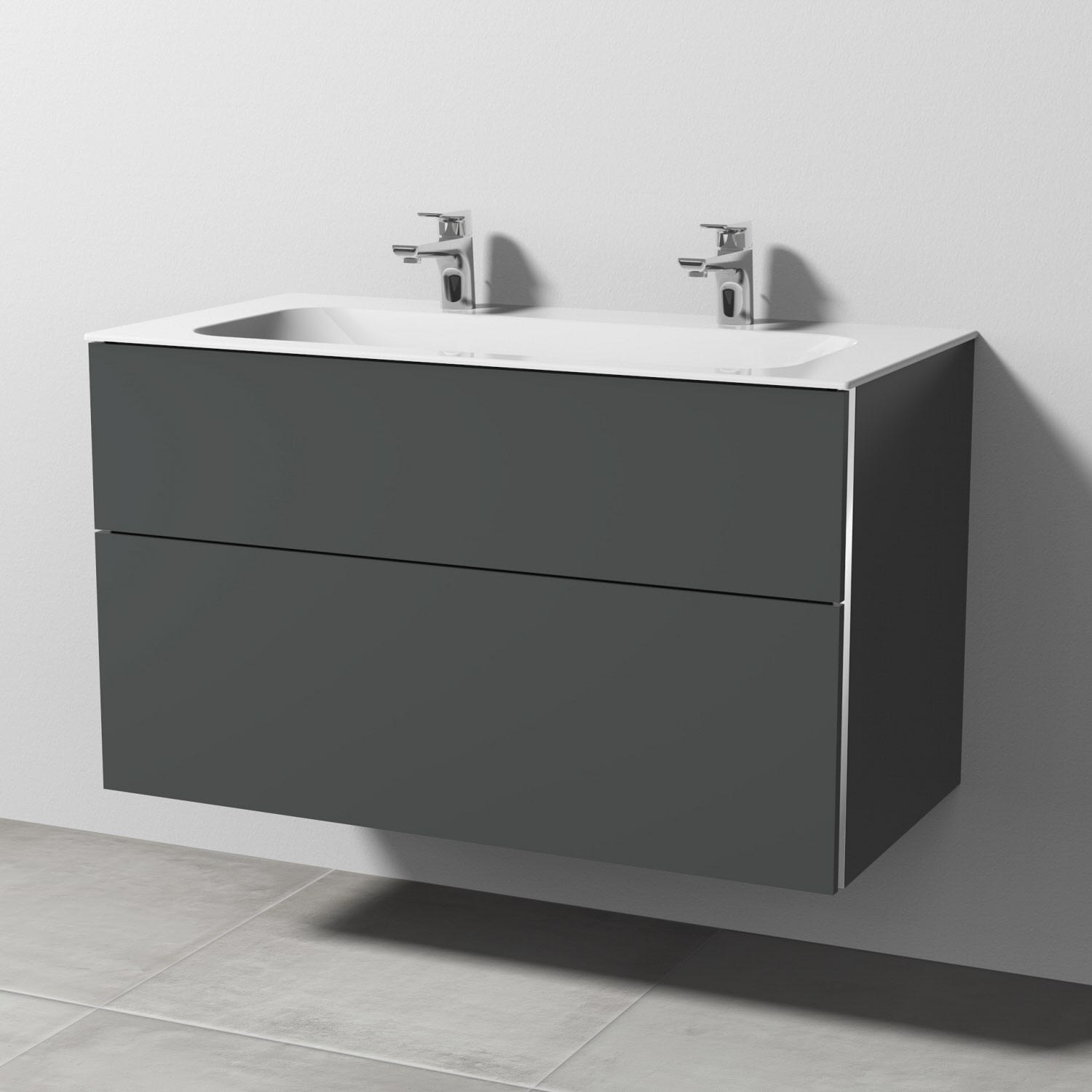 Sanipa 3way Unterschrank 100 cm, 2 Auszüge, Griff-Leisten mit Villeroy & Boch Finion Doppelwaschtisch