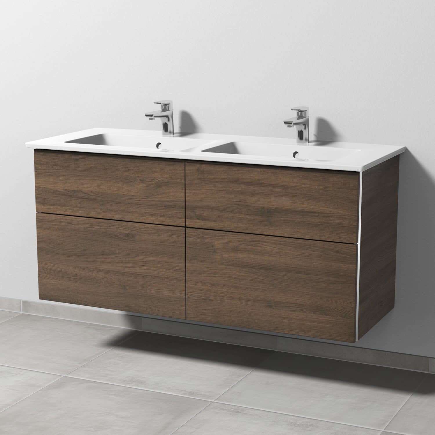 4 Auszüge mit Griff-Leiste, Doppelwaschtisch