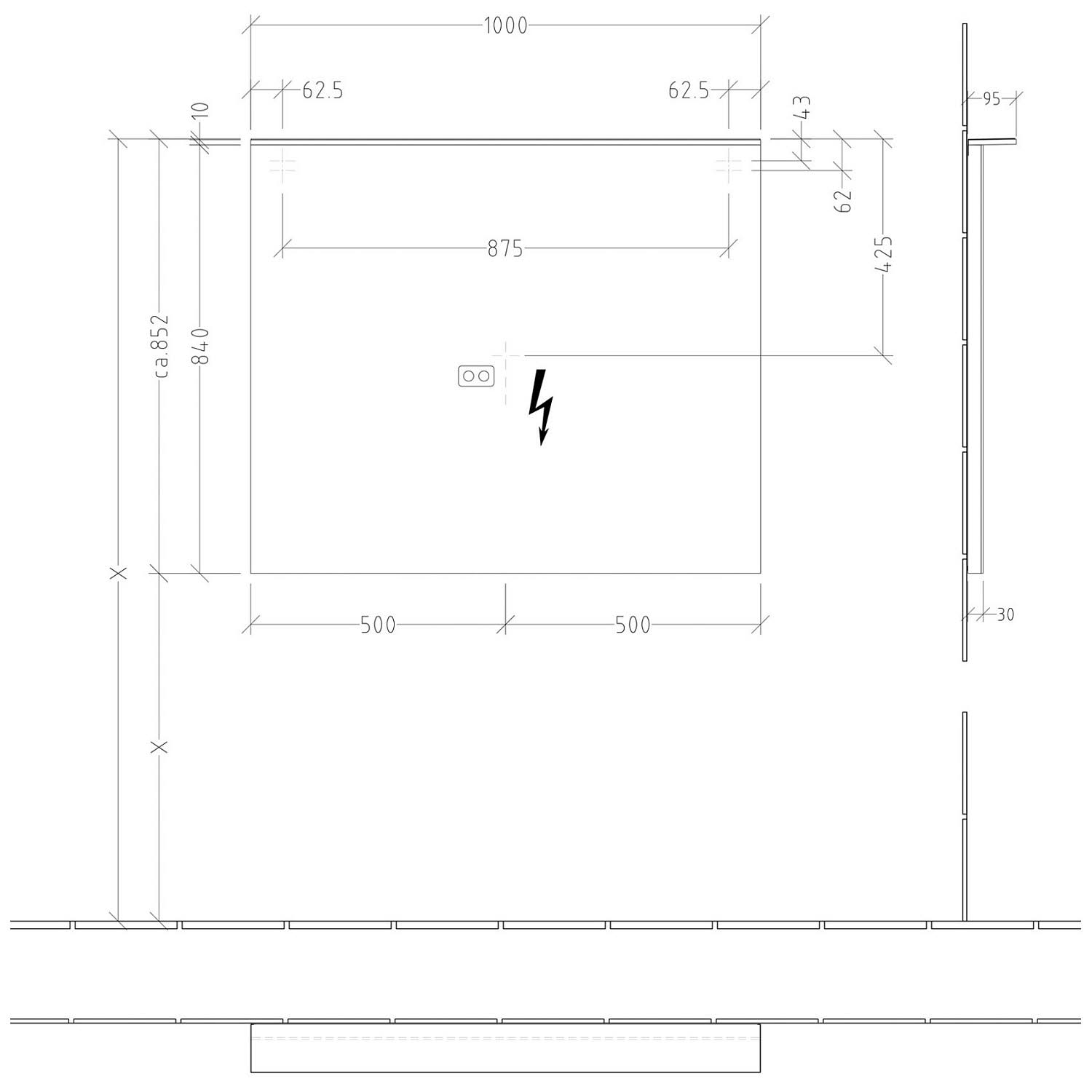 Sanipa Reflection Badspiegel LUCA 100 mit dimmbarer LED-Beleuchtung und Lichtsteuerung, 100 x 84 cm