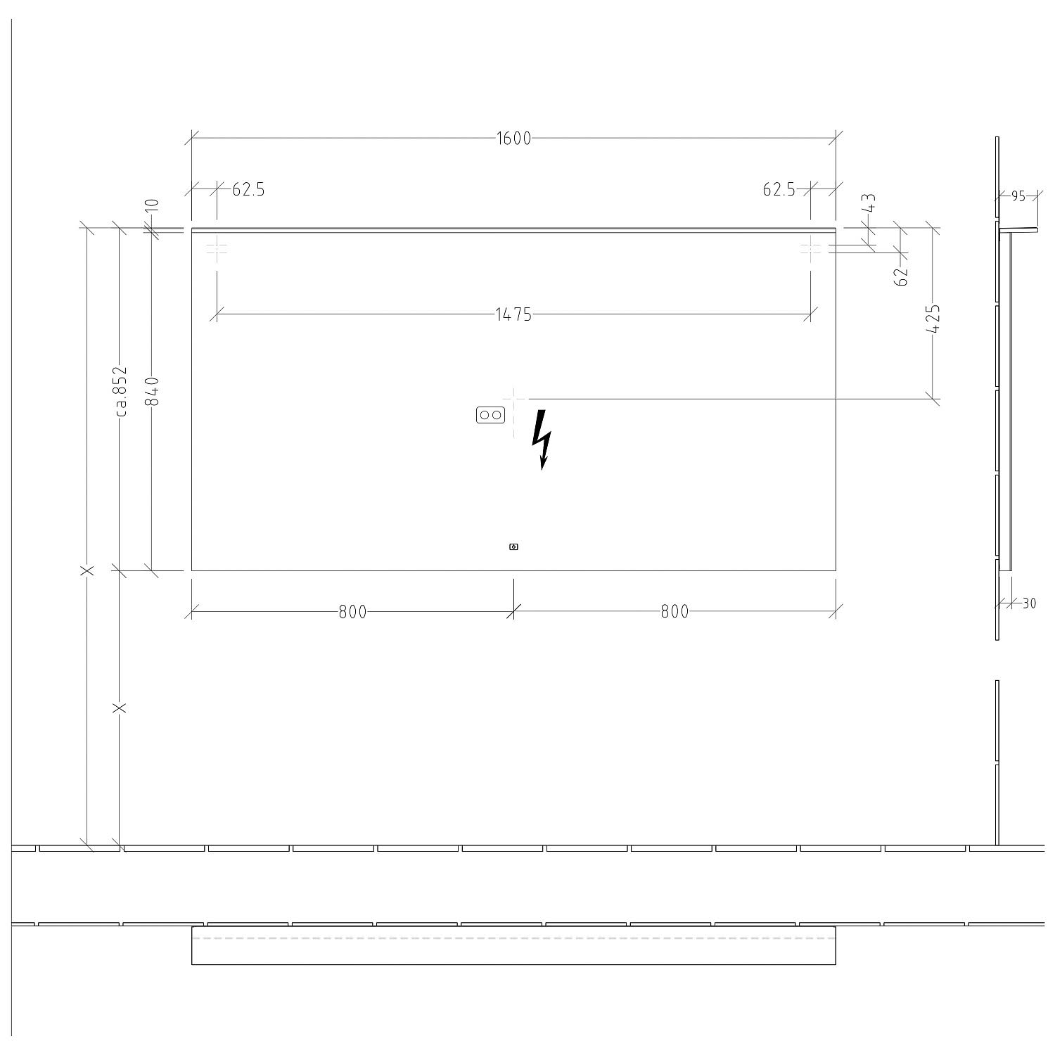 - 1 Touch-Feld unten-mittig auf der Spiegelfläche