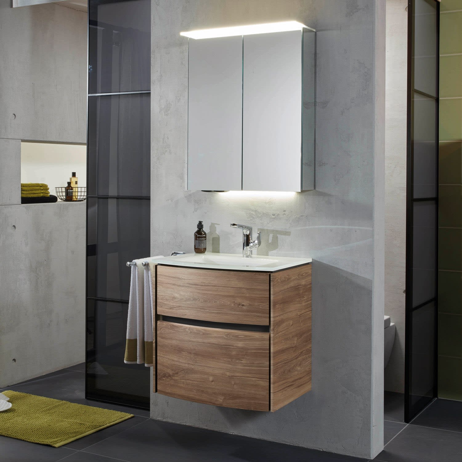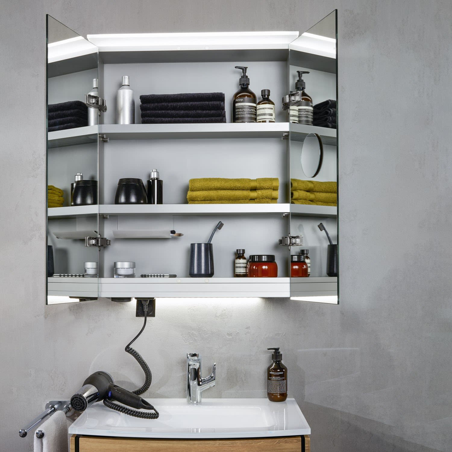 - mit 1 durchgehenden LED Waschplatzbeleuchtung 3,12 Watt