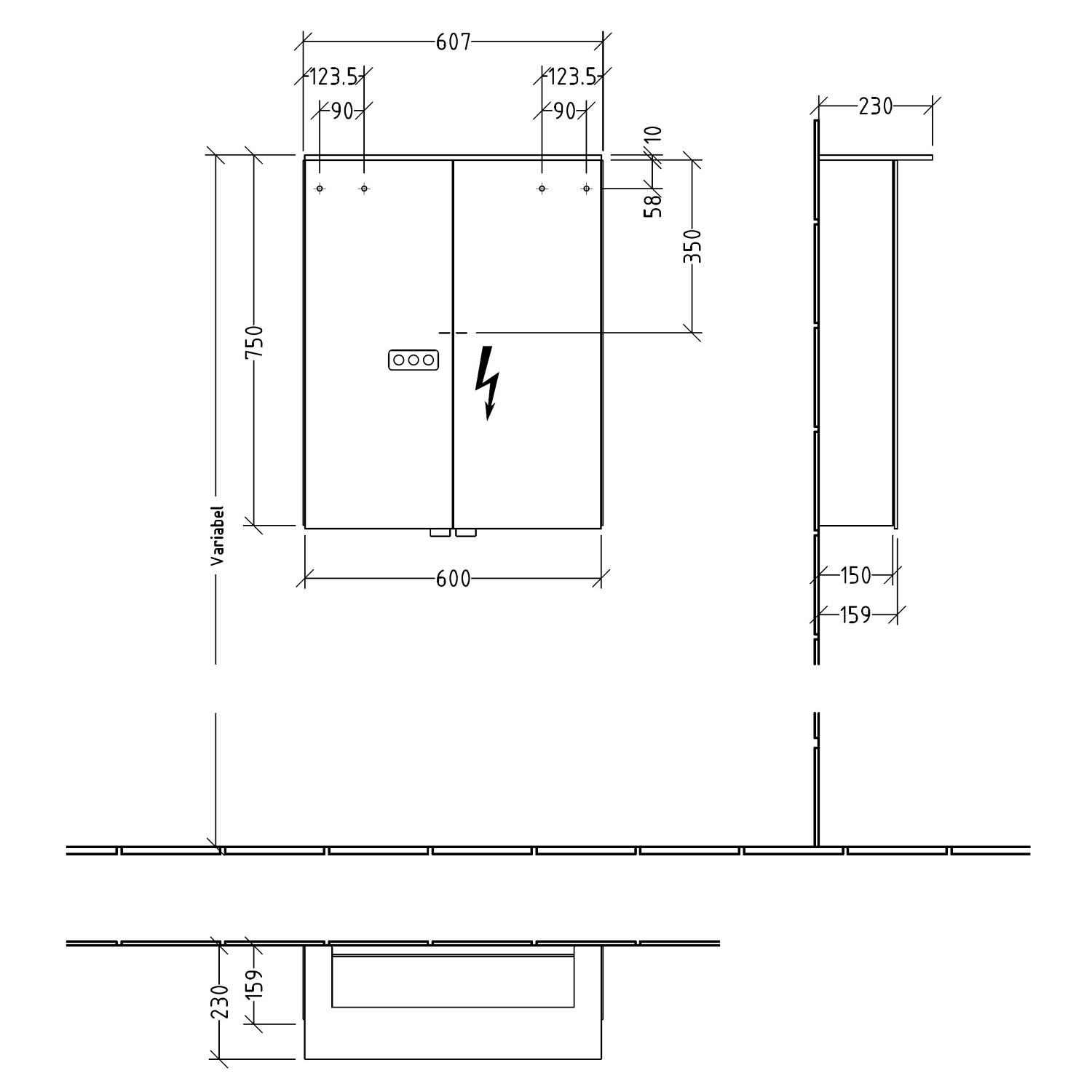 - Tiefe inkl. Leuchte: 23 cm