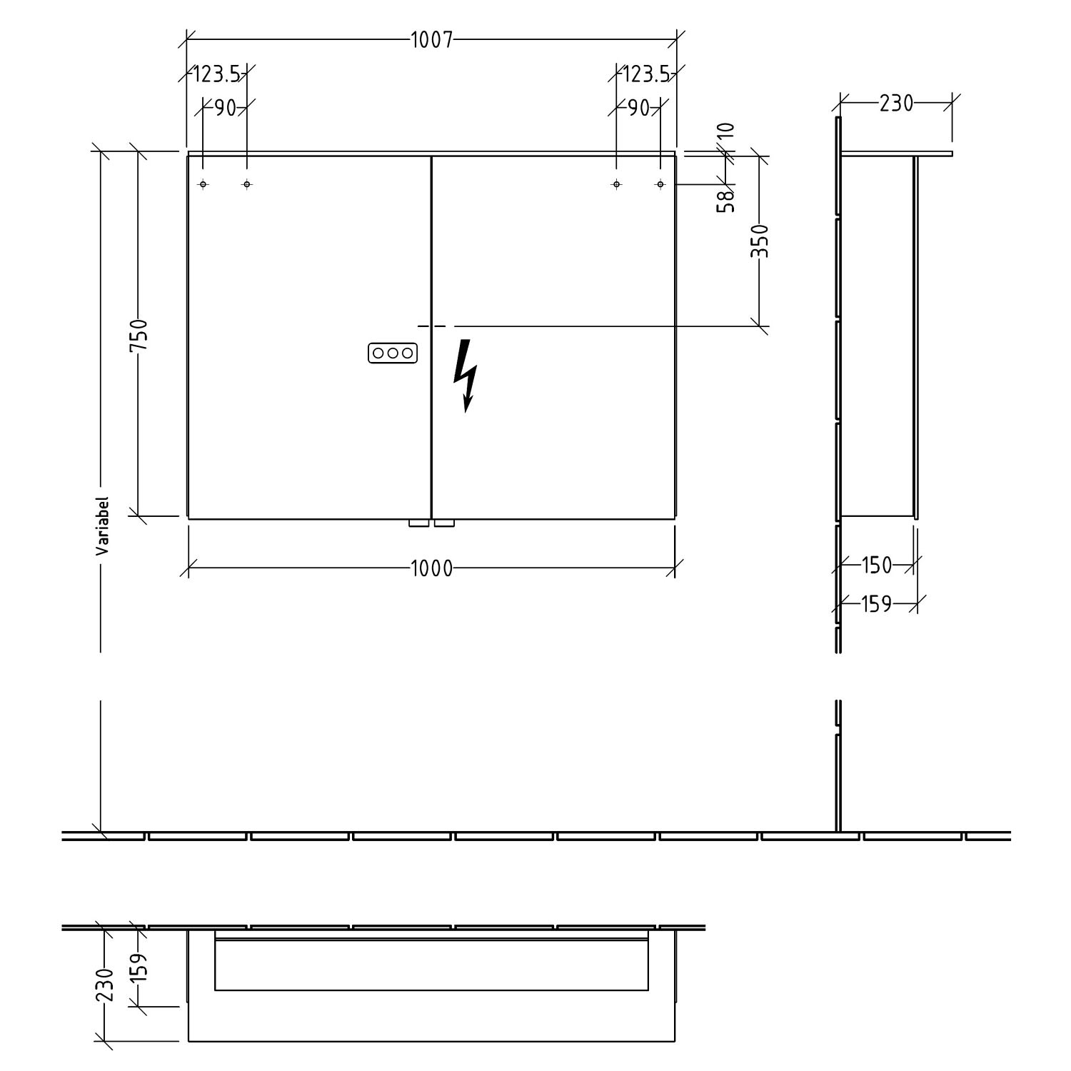 - Tiefe inkl. Leuchte: 23 cm
